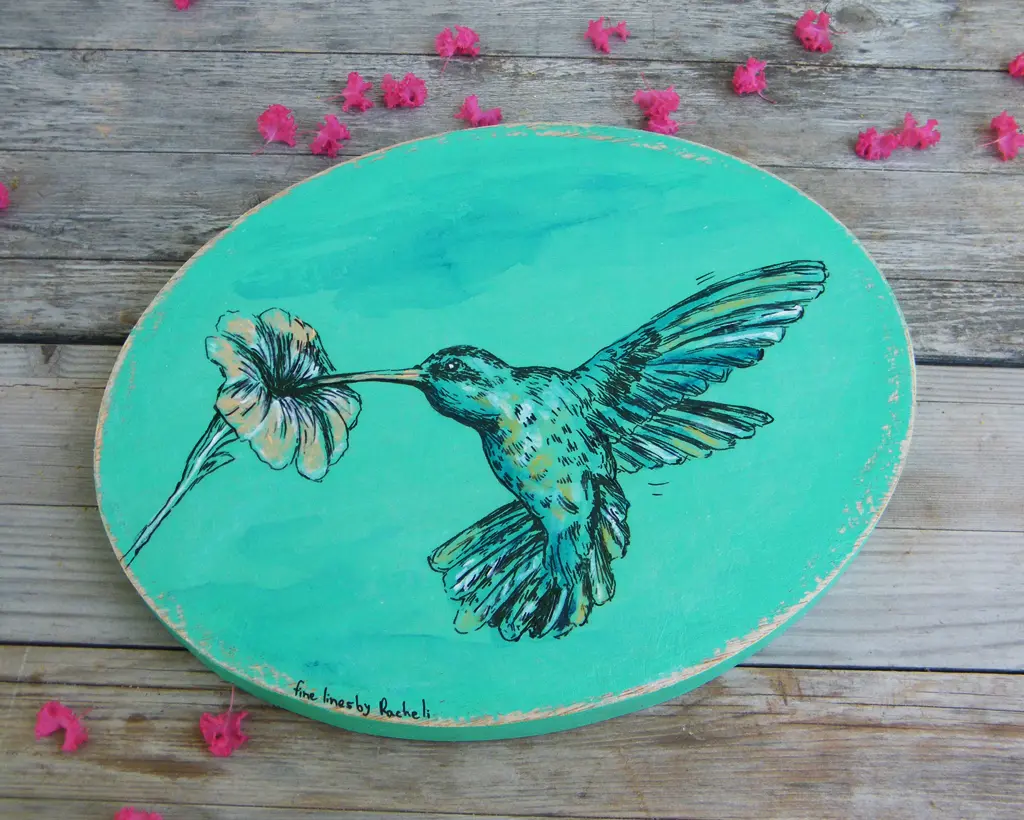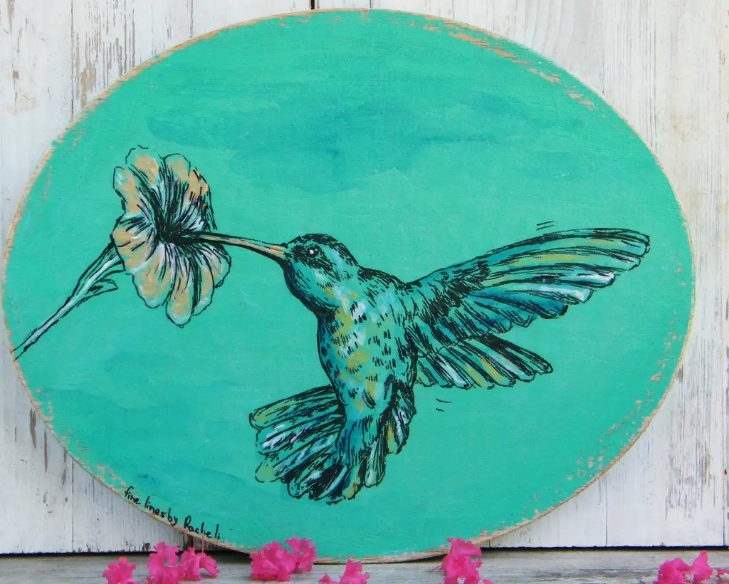 Hummingbird Wall Sign, Oval Wall Art, Hummingbird Print, Bedroom Decor, Hummingbird Art, Rustic wood sign, Nature Art, Round Wall Hanging