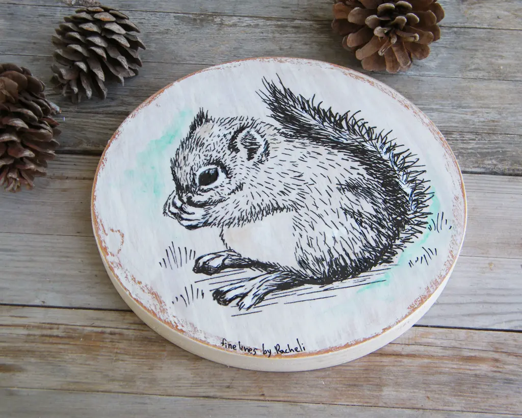 Squirrel Art, Round Wood Sign, Squirrel Wood Print, Rustic Nursery Decor ,Kids Room Decor, Rustic wood sign, Gift For Kids, Oval Wall Decor