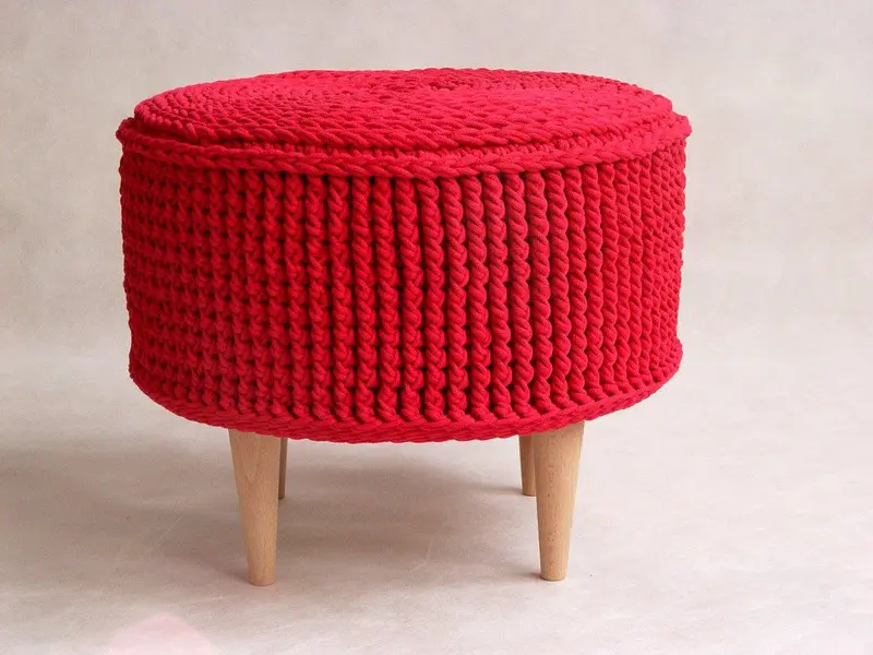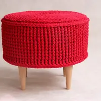 High quality hand knitted Ottoman pouf/stool/chair. The outer cover can be removed for washing. Comes with high quality wooden legs. Size: Diameter: 16" / 40 cm Height: 6"/ 18 cm Weigh: app. 3.00 kg.