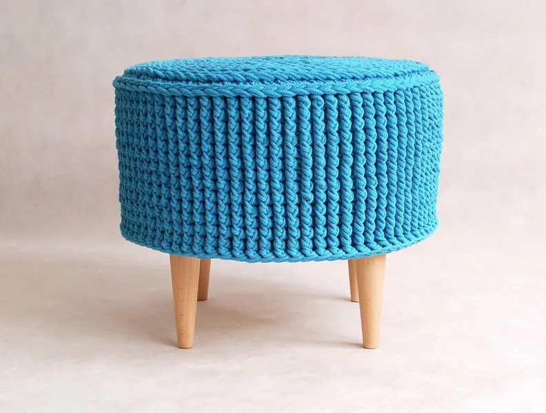 High quality hand knitted Ottoman pouf/stool/chair. The outer cover can be removed for washing. Comes with high quality wooden legs. Size: Diameter: 16" / 40 cm Height: 6"/ 18 cm Weigh: app. 3.00 kg.