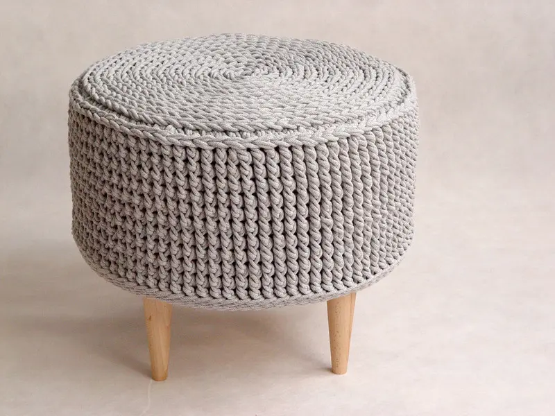 High quality hand knitted Ottoman pouf/stool/chair. The outer cover can be removed for washing. Comes with high quality wooden legs. Size: Diameter: 16" / 40 cm Height: 6"/ 18 cm Weigh: app. 3.00 kg.