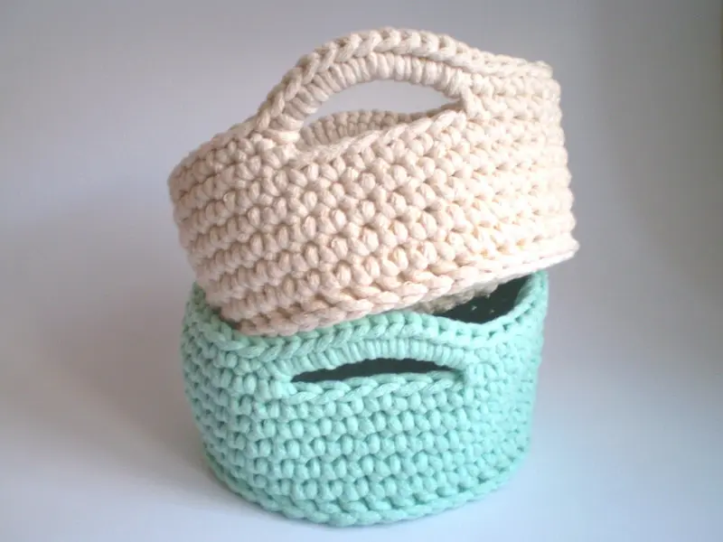 High quality hand knitted crochet basket made of cotton yarn. Great for storage and organization ! Can be easily hand washed. Size: Width: 50 cm Height: 40 cm Weigh: app. 1.20 kg.