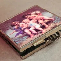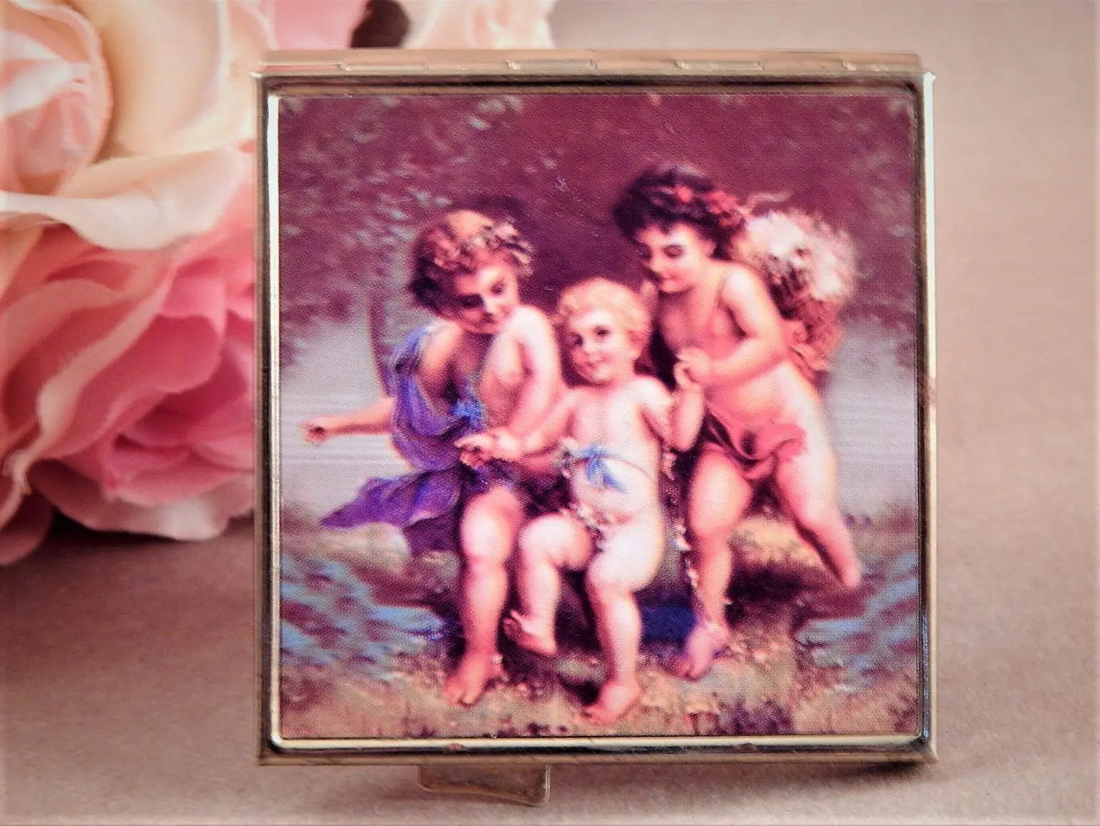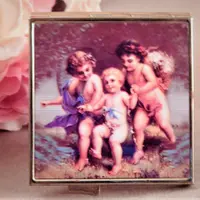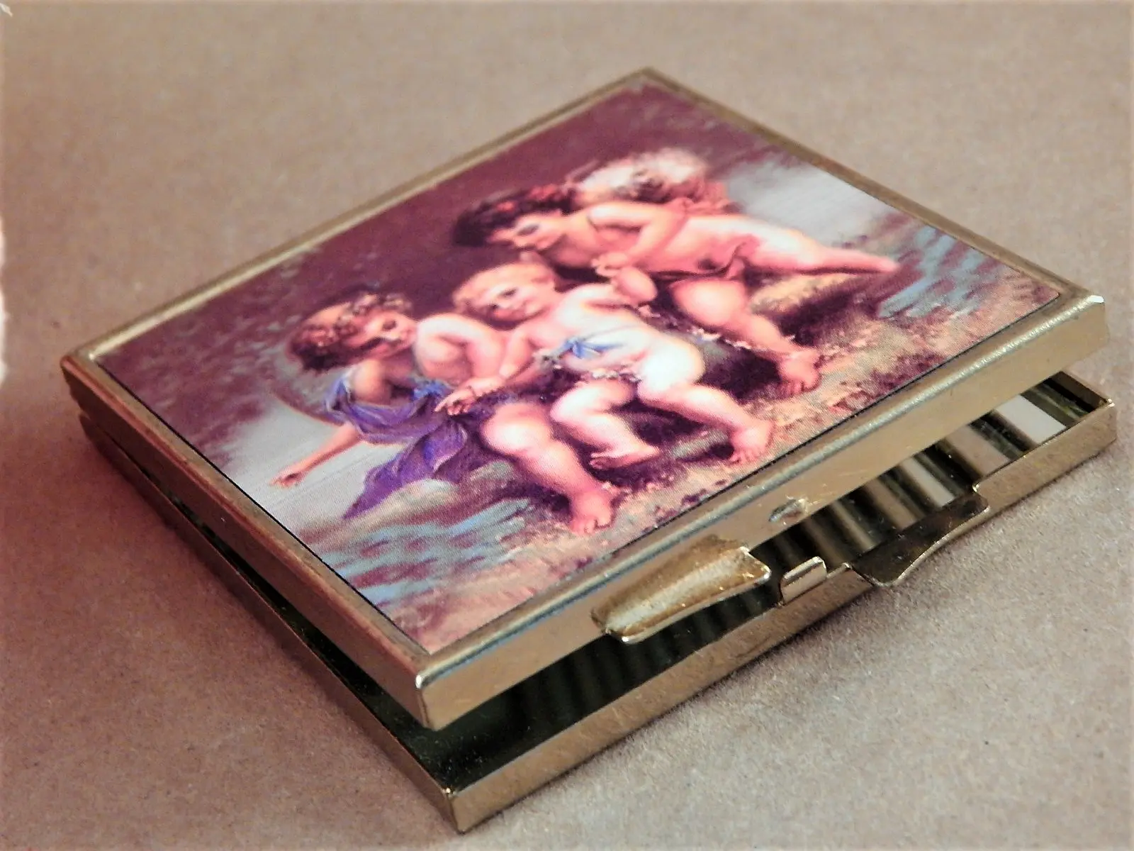 vintage, mirror, compact, make up mirror, magnified mirror, purse mirror, pocket mirror, lipstick mirror, grooming accessory, gift for her, stocking stuffer, teen girl,angels, cherubs,
