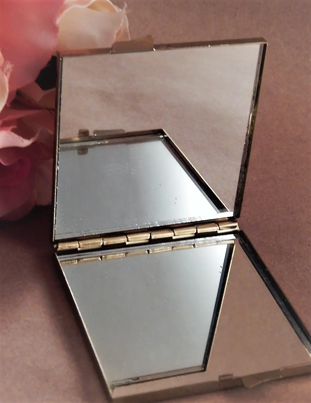 Vintage 1960's gold metal compact mirror
