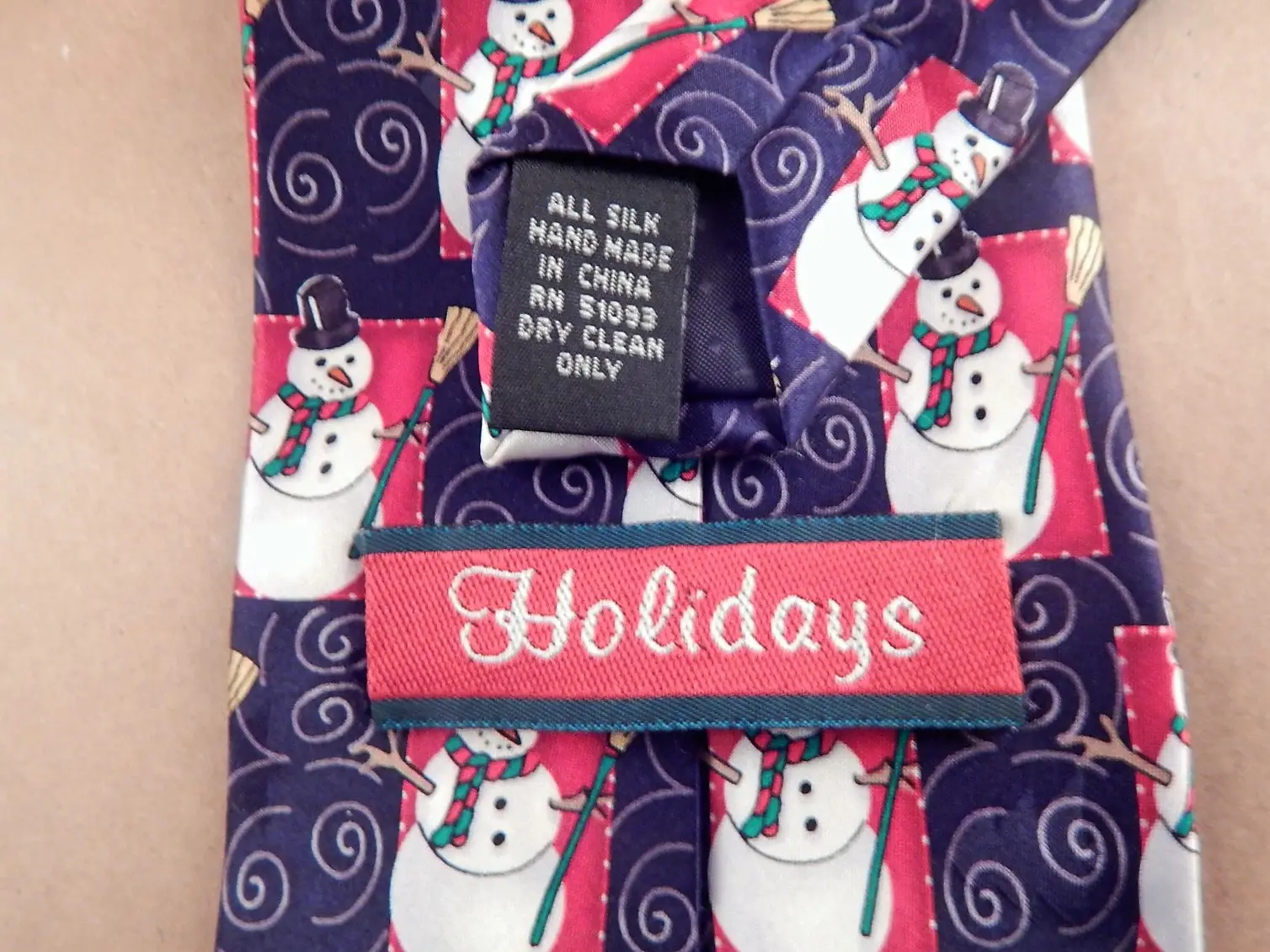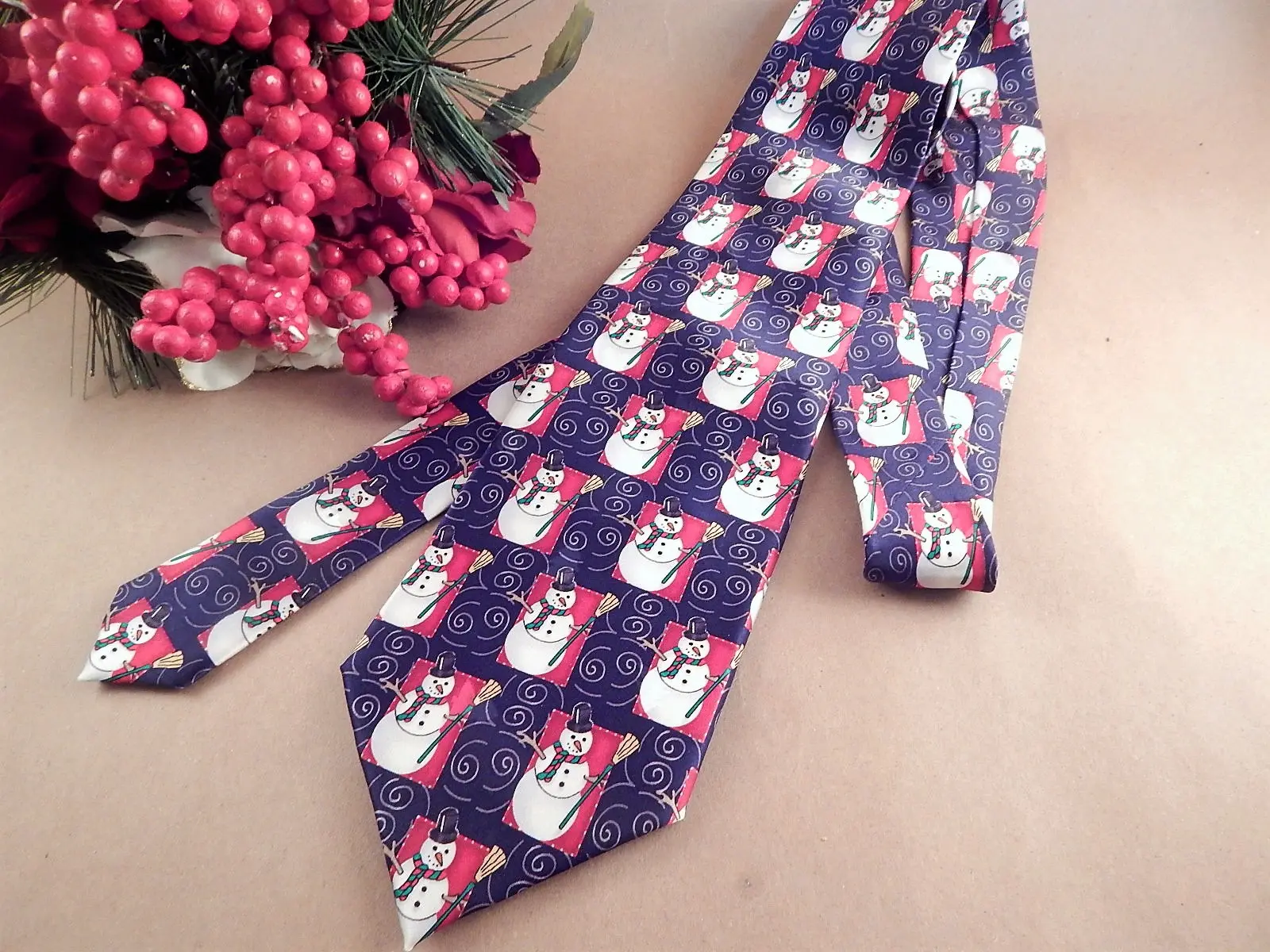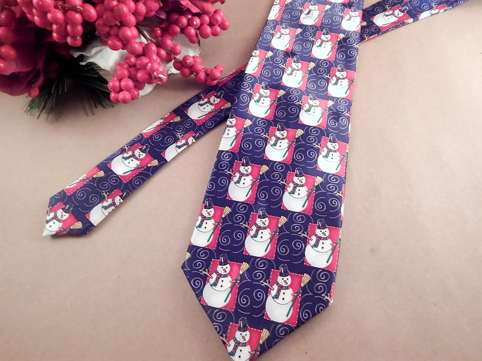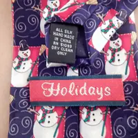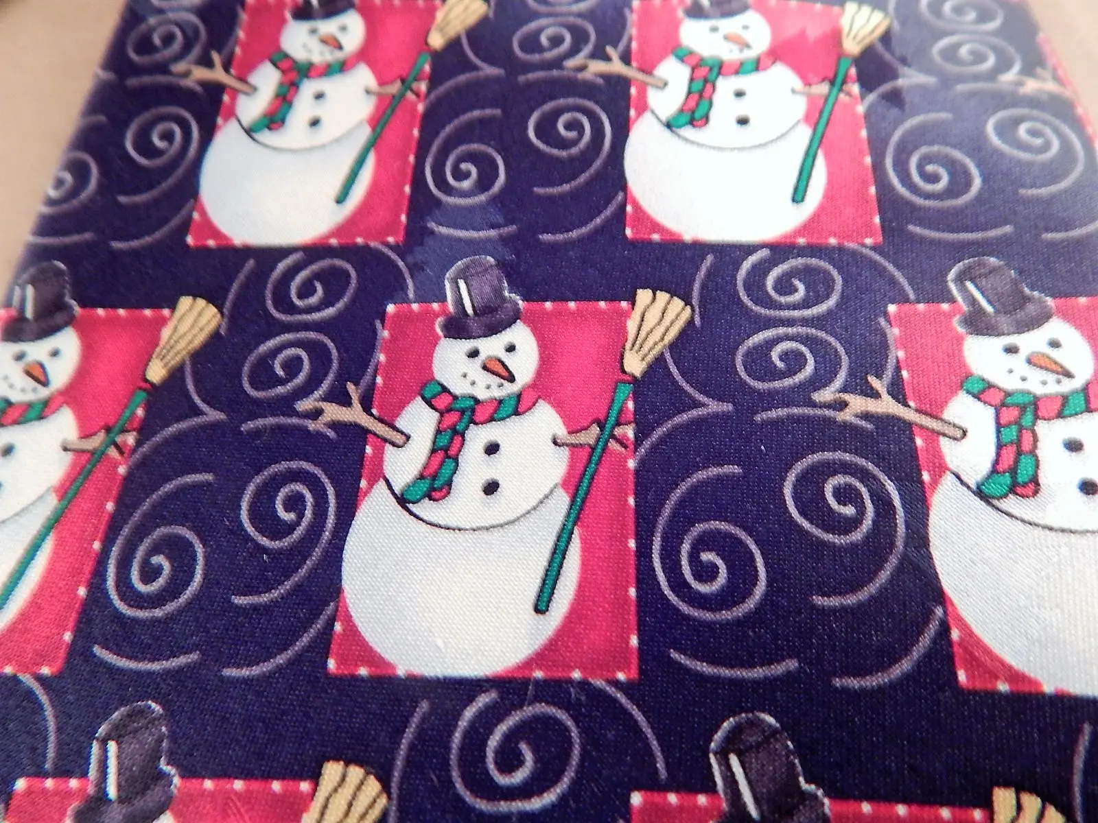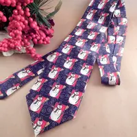 mens tie ,neckwear, vintage accessory, gift for men, costume prop, craft sewing supply, silk tie ,necktie, mens attire necktie, menswear tie, blue red blue, snowman, christmas, winter, tie, holiday designer