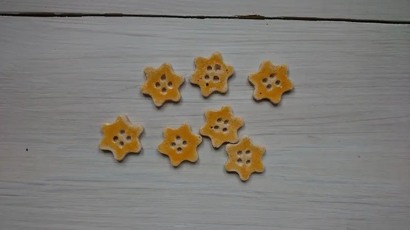 Handmade ceramic buttons, set of six buttons, Star shape in Mustard yellow, glazed. If you need a another color please contact me.