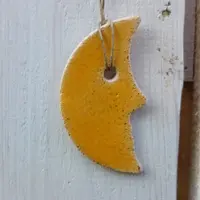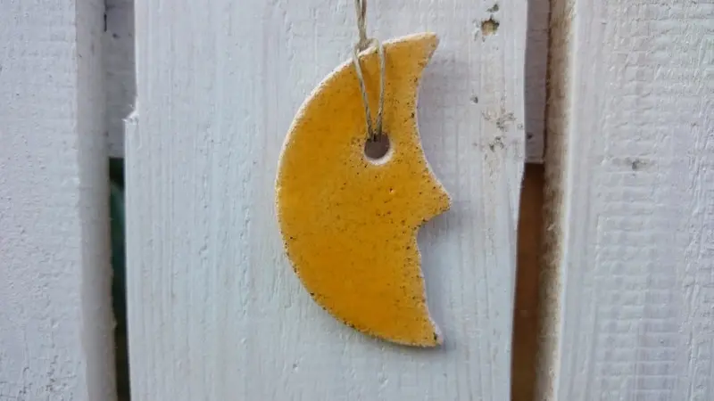 Handmade ceramic Pendant, set of six pendants, moon shape, glazed. Select the color - yellow, pink, blue, white.