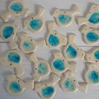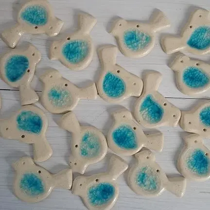 Handmade ceramic Pendant, set of six pendants, Bird shape, glazed. Select the color - pink, blue, white.