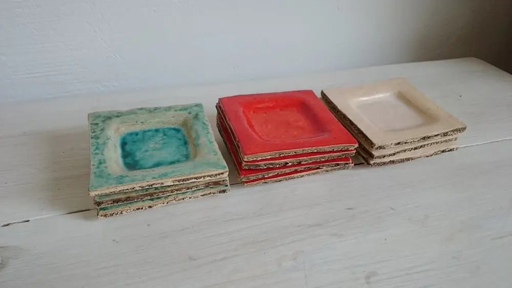 Handmade ceramic small serving squares, set of three.