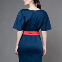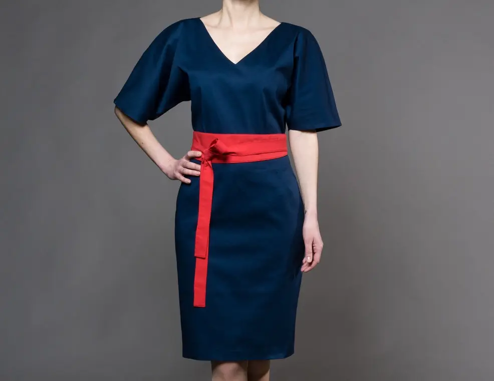 Kimono Sleeve Dress with belt Above the knee length - Self tie belt - 100% lightweight European linen fabric - Cut and sewn to order just for you in our studio - Please allow 1-2 weeks for item to be made and shipped Dark Blue With Red Belt