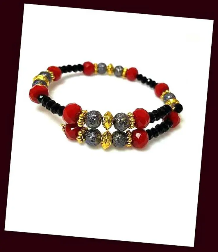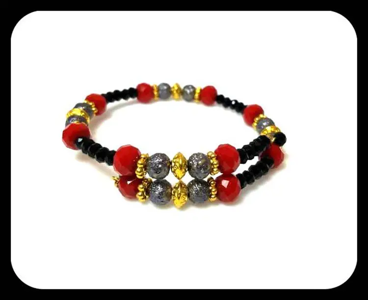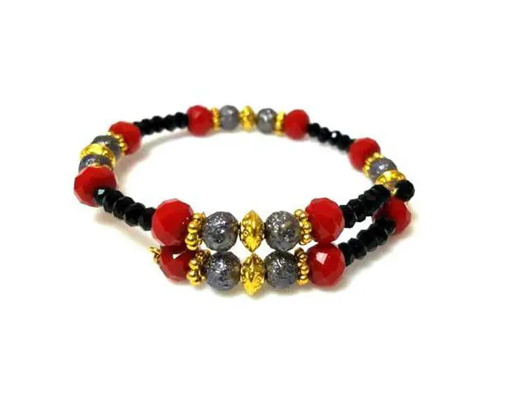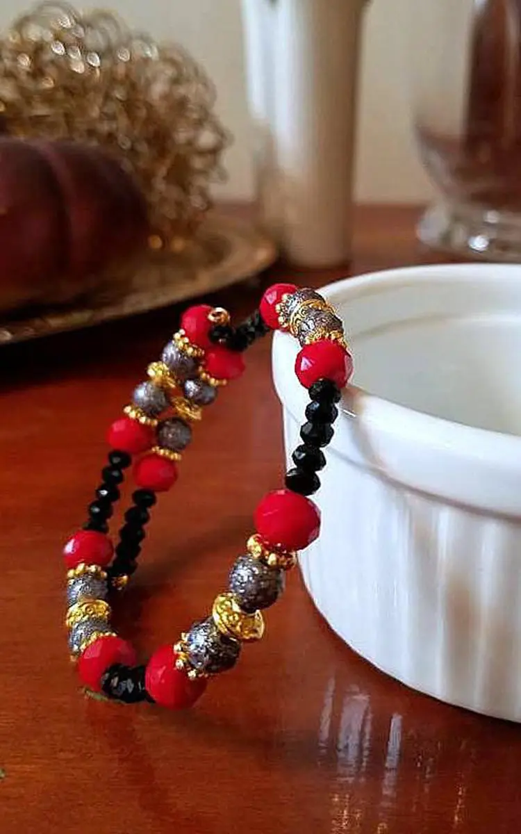 Black Red Beaded Memory Wire Bracelet Gray Gold Bracelet Boho Casual Bracelet Everyday Slate Grey Jewelry Wire Wrapped Bracelet Gift for Her