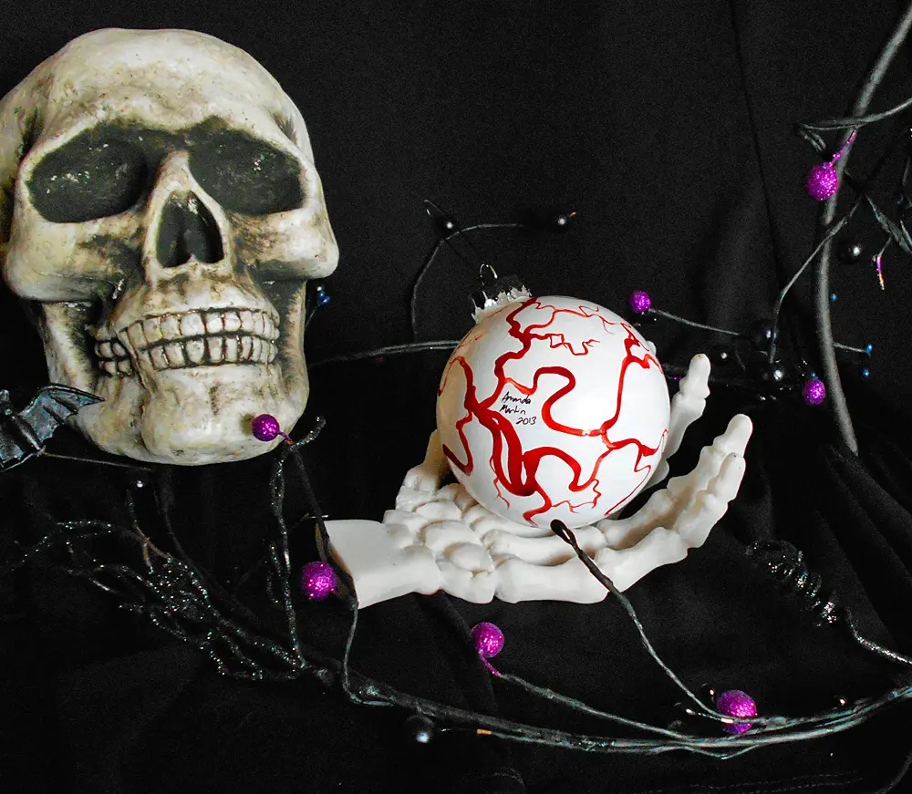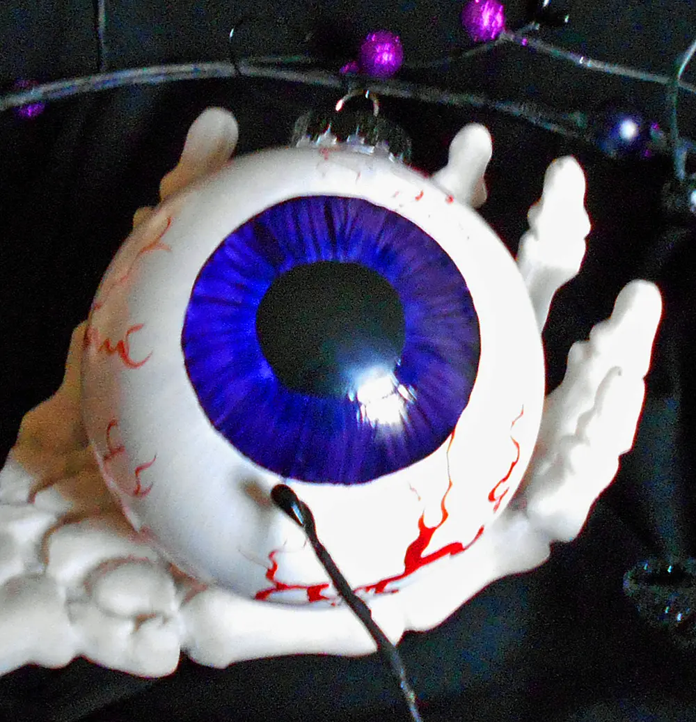Hang it on a string in your window, or decorate a "creepy" Halloween Tree, "Heck...put it in a bowl even!"