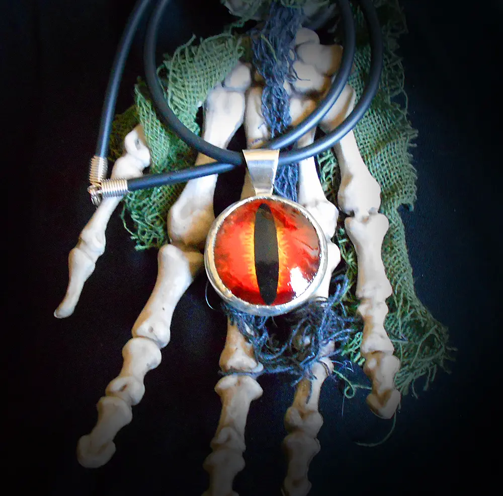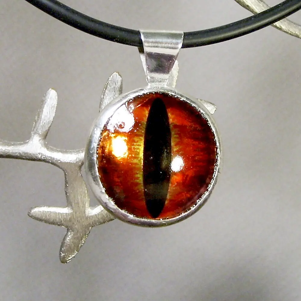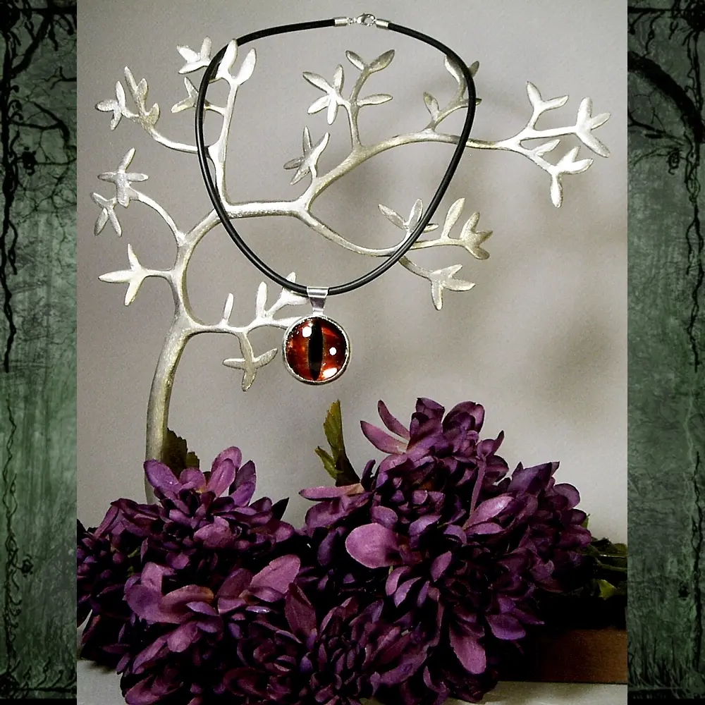 OOAK Hand-cast, poly-resin Metallic Dragon eye on an 18" Hypoallergenic black rubber cord