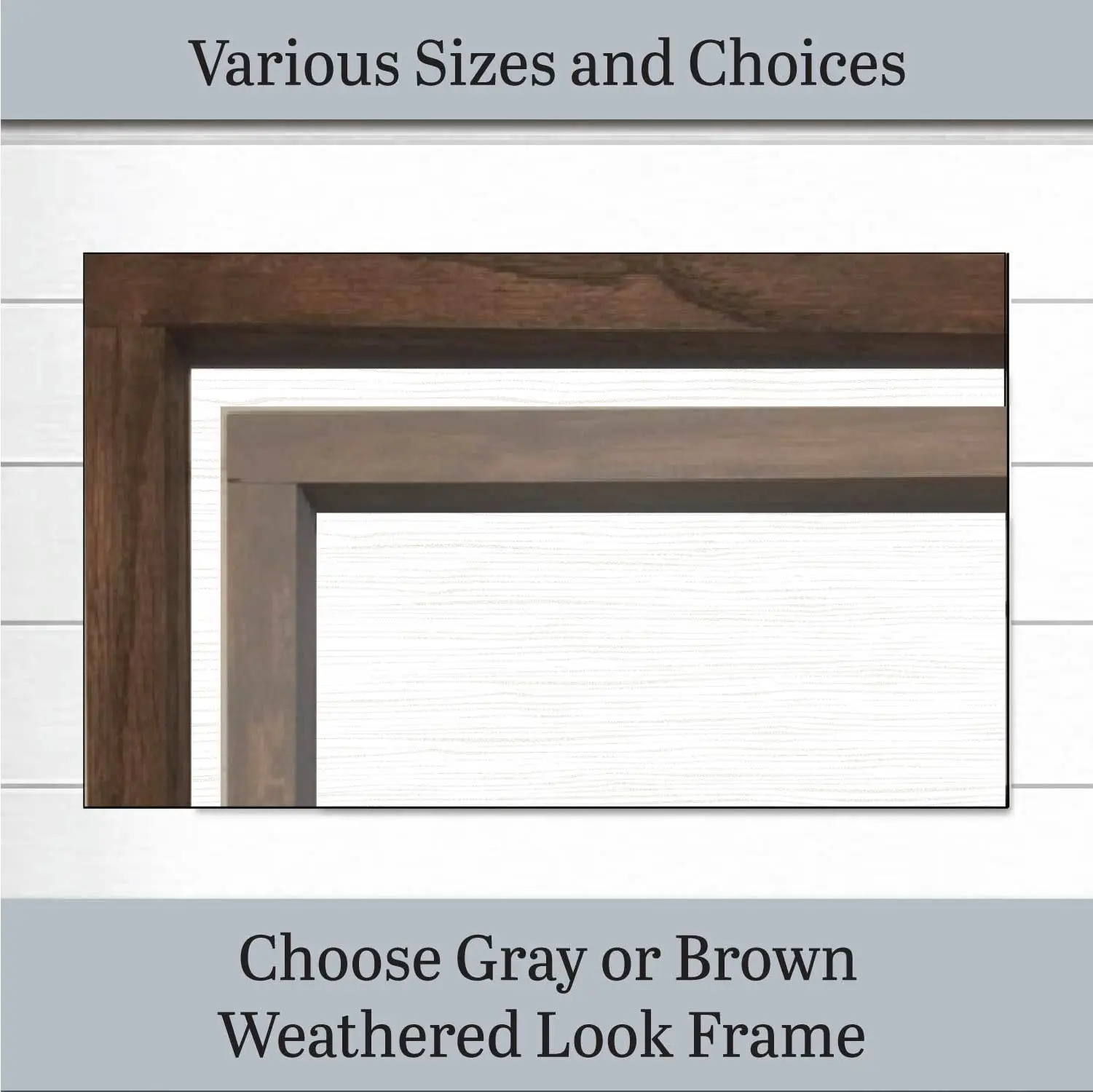 Your sign is made to order. Therefore, you will have a unique piece, and no two will be exactly alike. Each wood frame may take the finish differently. The distressing background process will produce something a little different each time. However, your frame will be similar to what is pictured. It is a good idea to measure your space and find the best size option for your area.