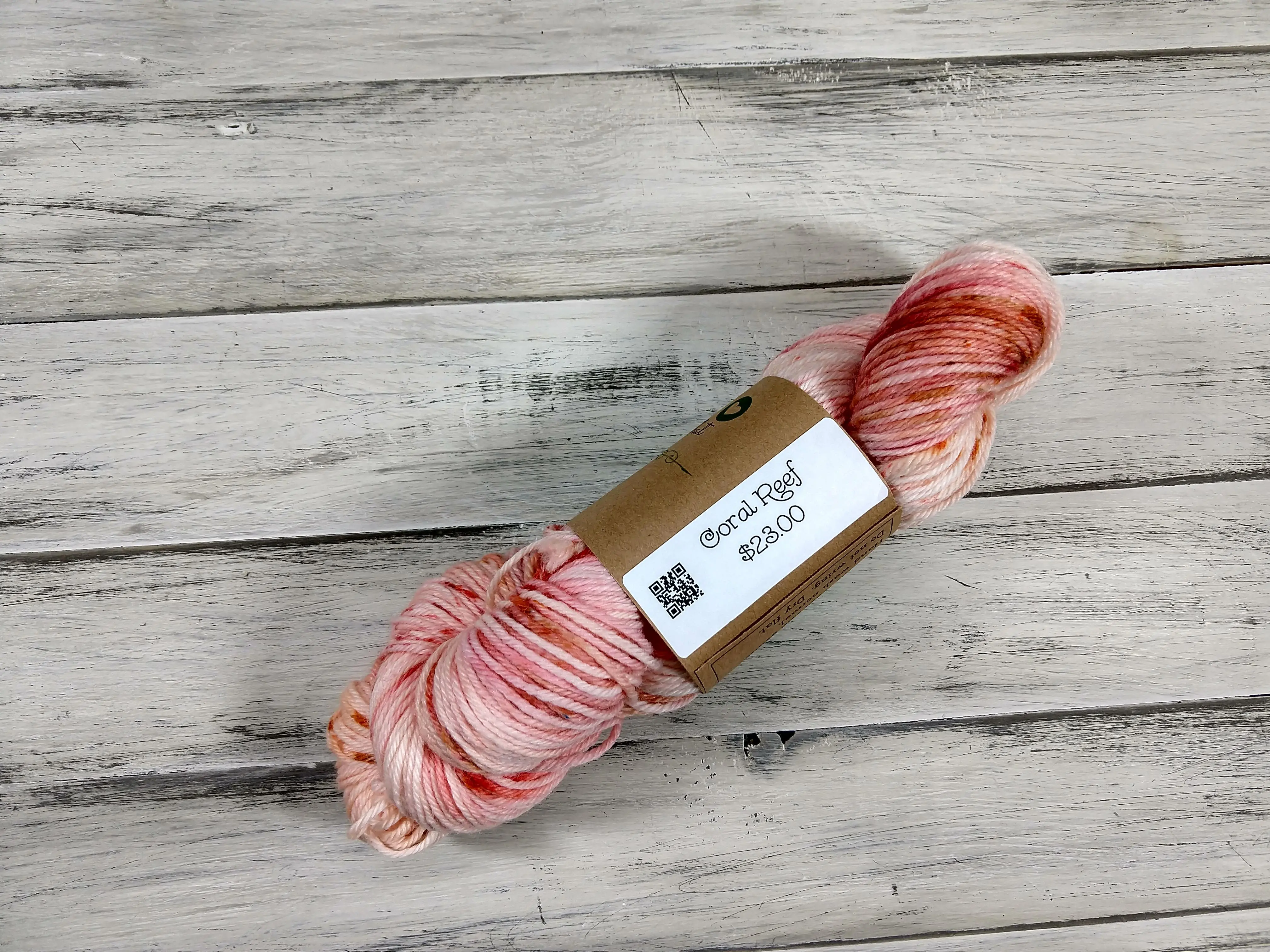 Hand dyed superwash merino wool and nylon DK weight yarn that is soft and squishy, yet strong and durable. It is a very versatile yarn, it can be used for shawls, wraps, mittens, socks, hats and children's and baby clothes. Machine washable in cold water on a gentle cycle and tumble low in a dryer or dry flat. Mix and match the variegated, speckled and tonal colorways for larger projects such as sweaters, children's wear, and shawls/wraps or pick a favorite color for a great hat and mittens combo or a matching cowl!