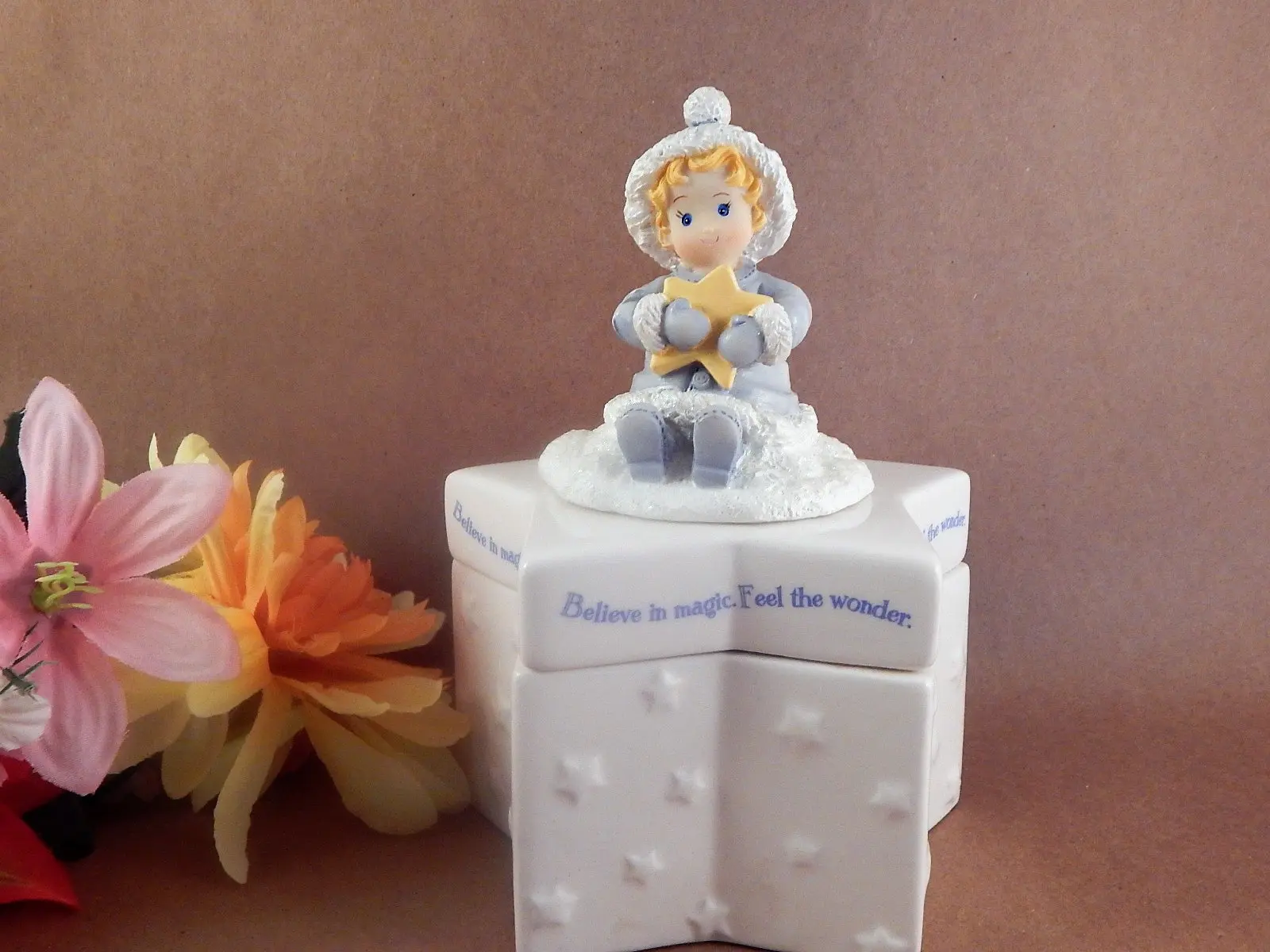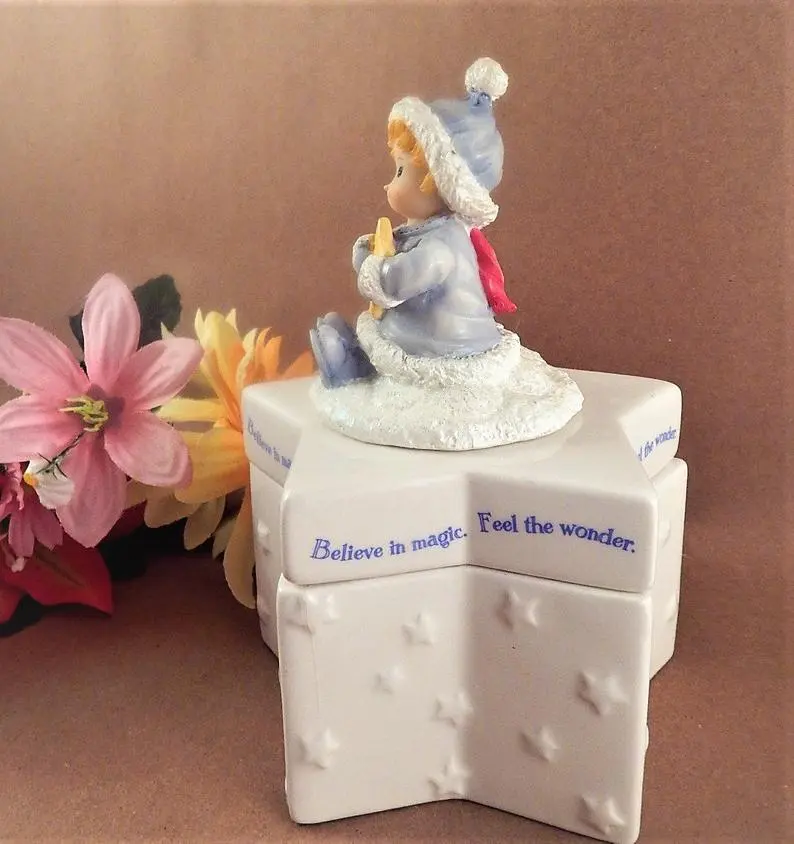 Trinket Box Snow Girl White Ceramic Star Shaped Believe in Magic Hallmark HMK Holiday Decor Gift