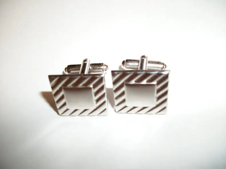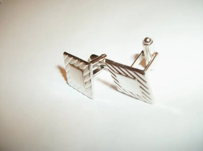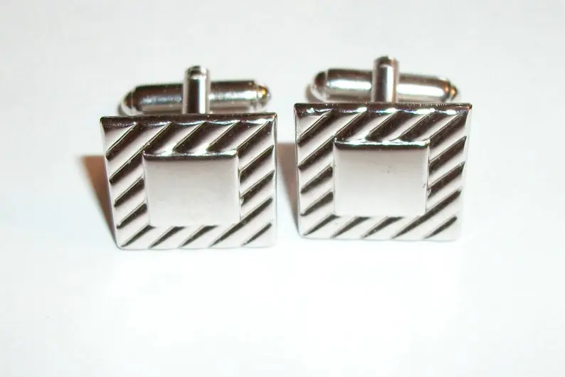Vintage Accessory, Cuff Links, Mens Jewelry, Geometric Stripe, Silver Metal, Formal Black Tie, Wedding Groom, Father of the Bride, Best Man Attire