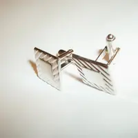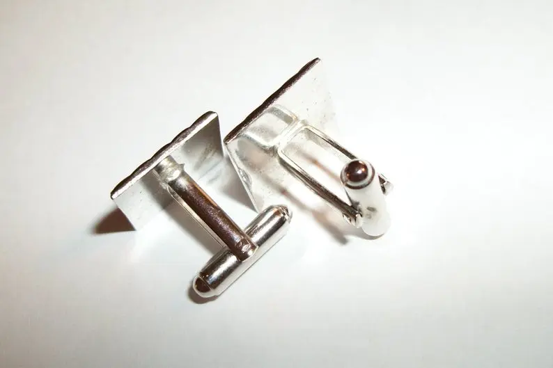 Cuff Links Men's Jewelry Geometric Silver Metal Vintage 1970s Formal Wedding Groom Father of the Bride Best Man Attire