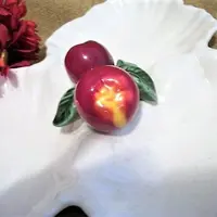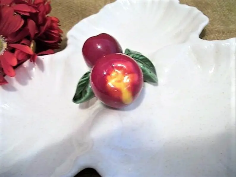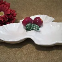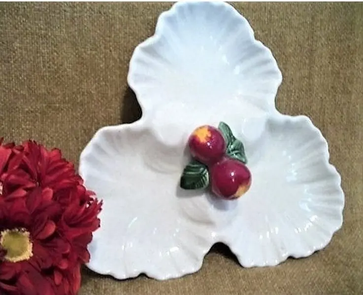 California Pottery Handpainted Decorative Dish Red Apple Ceramic Plate AP511 Sectional Dish Divided Plate Three Leaf Plate