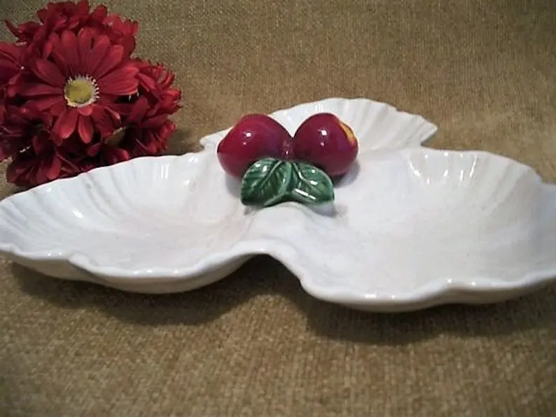 sectional dish, california pottery, decorative dish, red apple kitchen, serving dish, divided plate, ceramic, vintage ceramic dish,