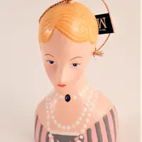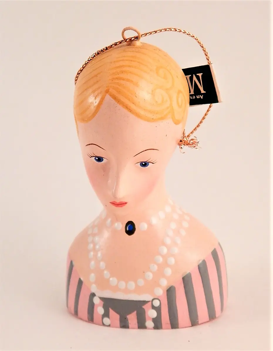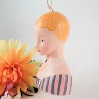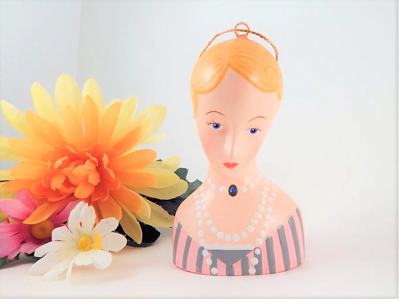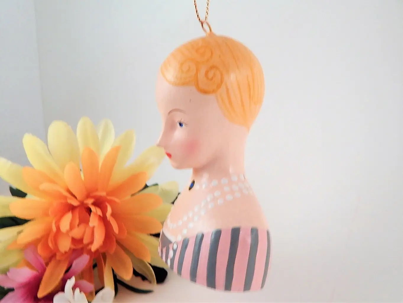 womens bust, ladys head, ornament, figurine, vanity table decor, boudoir decor, christmas ornament, stocking stuffer, flapper era, roaring 20s, victorian, victorian woman, victorian ornament