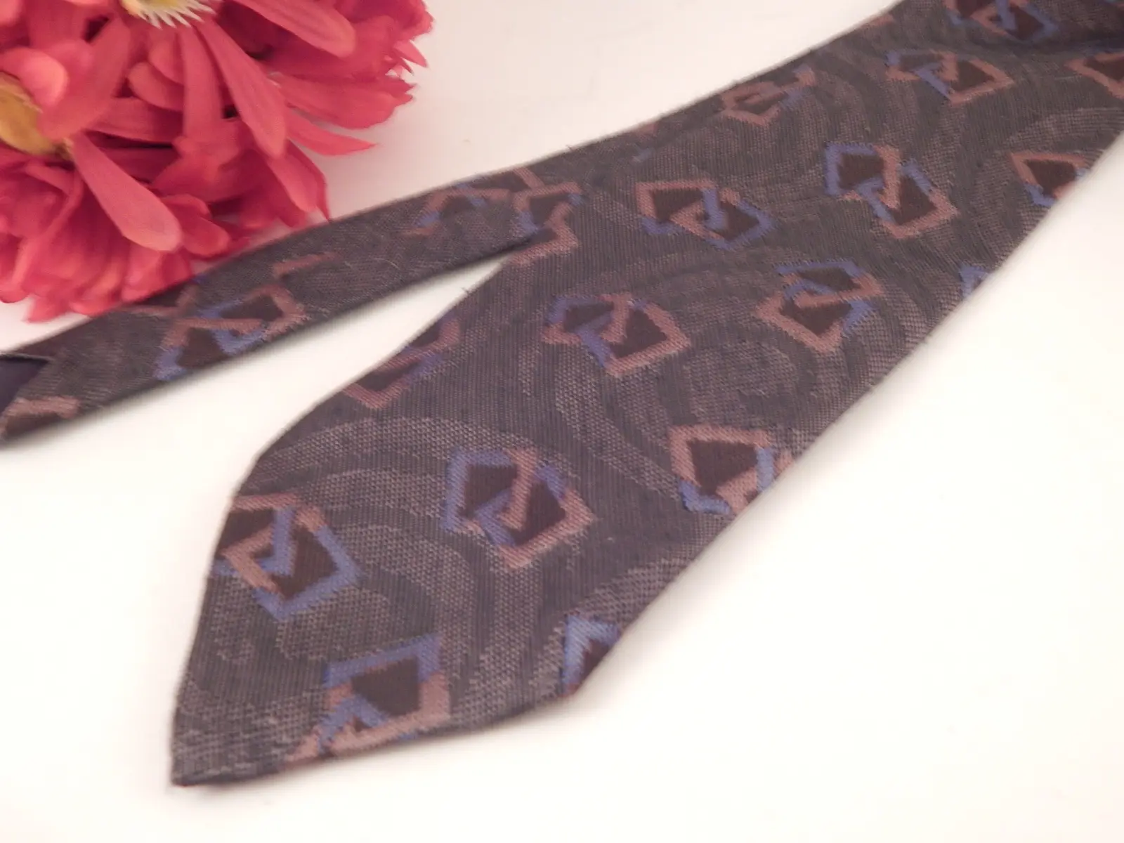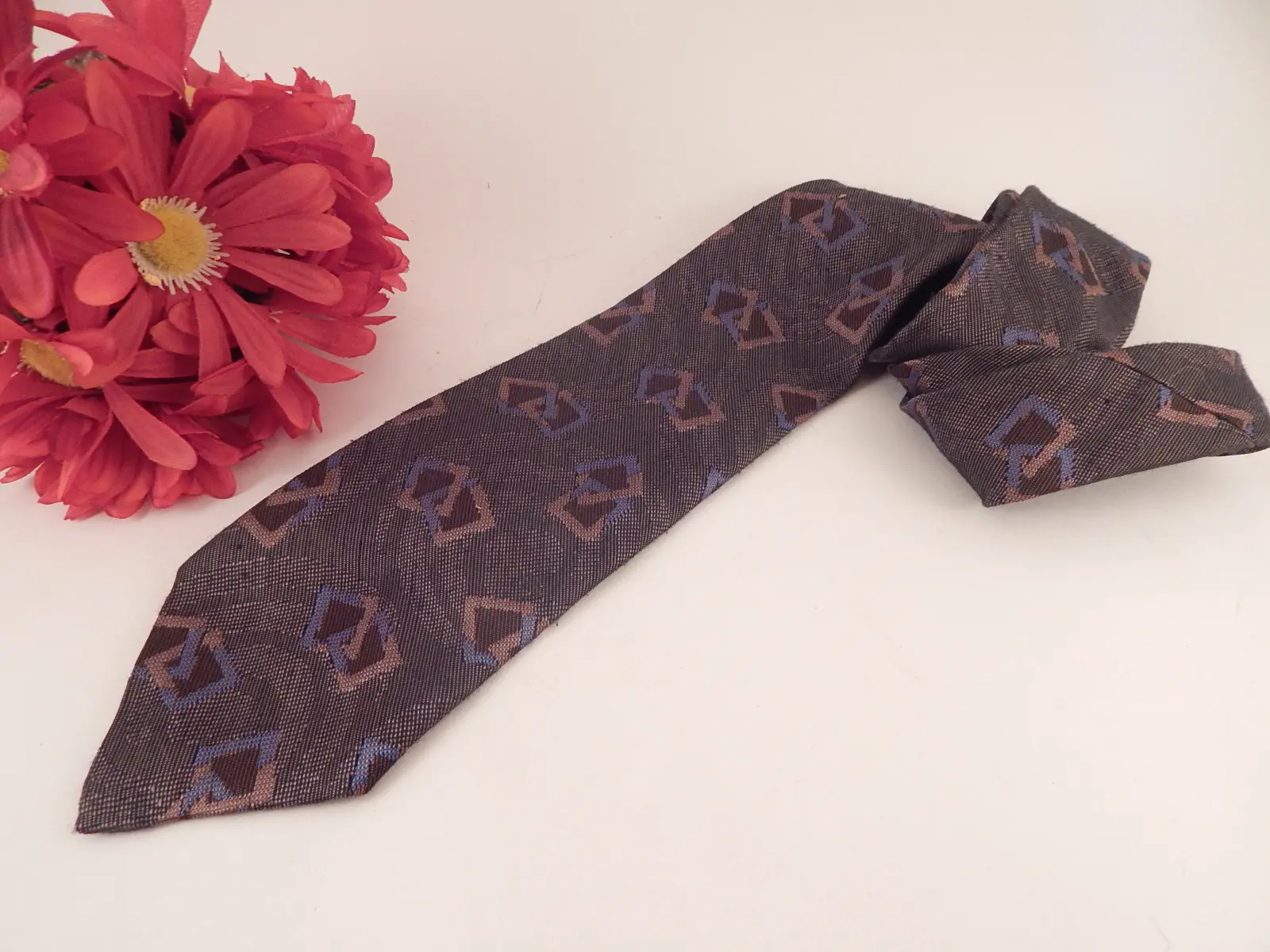 mens tie, vintage accessory, gift for men, mens fashion attire, costume prop, craft sewing supply, silk tie necktie, menswear tie, dino orsini, geometric, designer, brown, teal