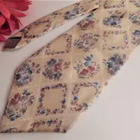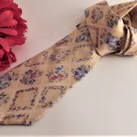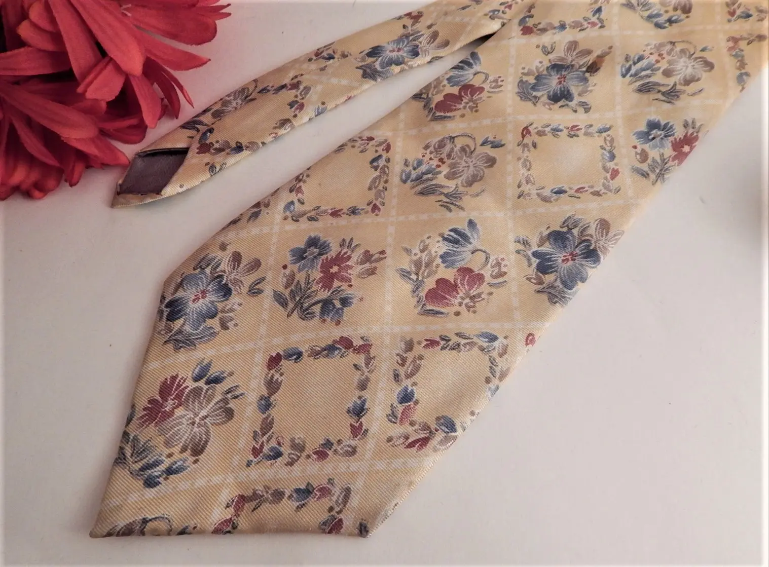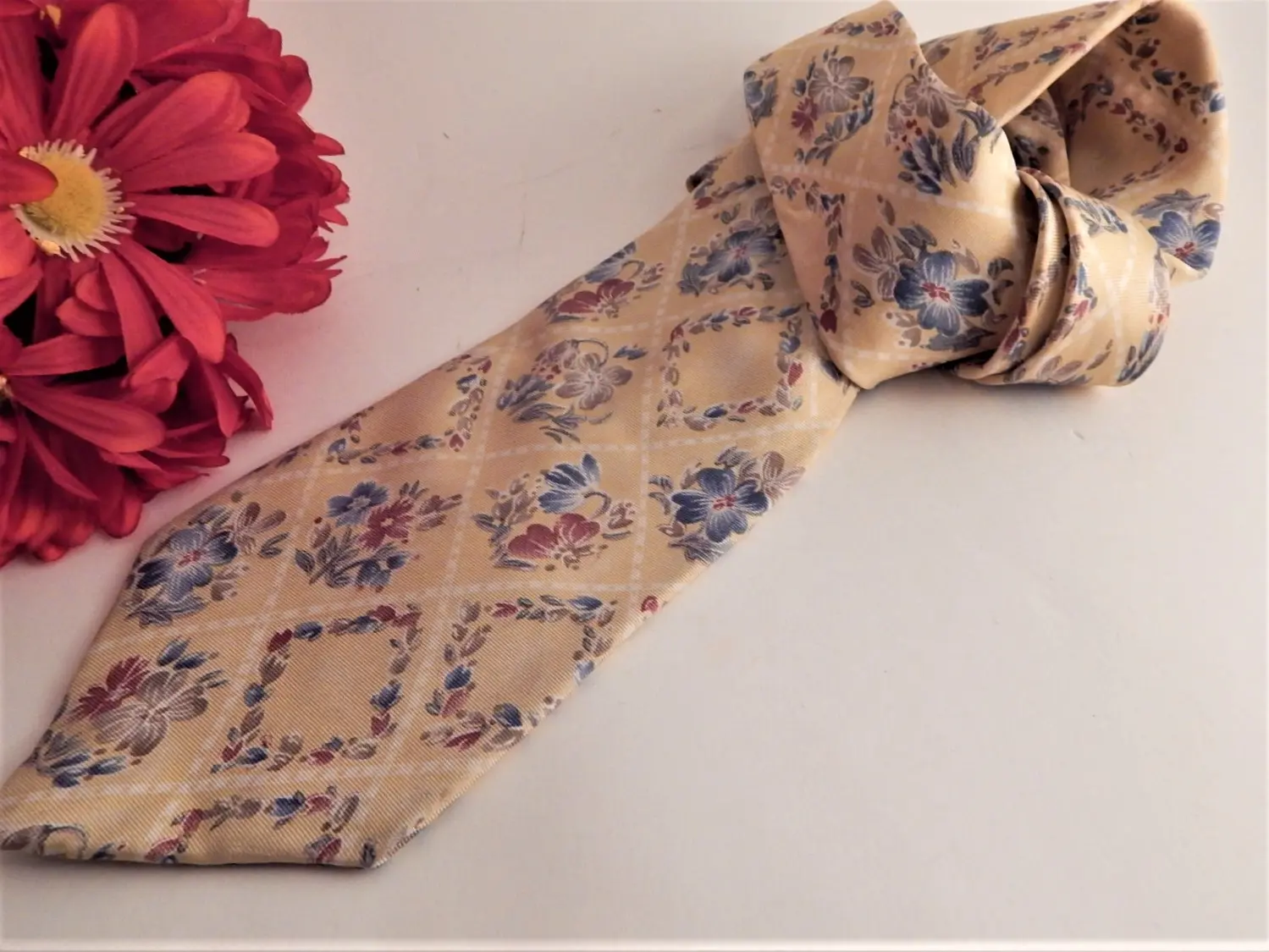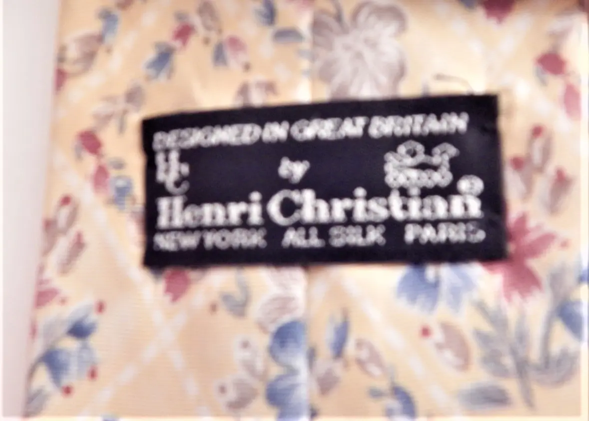 Mens Neck Tie Designer Henri Christian Yellow Floral Geometric All Silk Necktie Vintage HC Mens Business Formal Accessory Neckwear