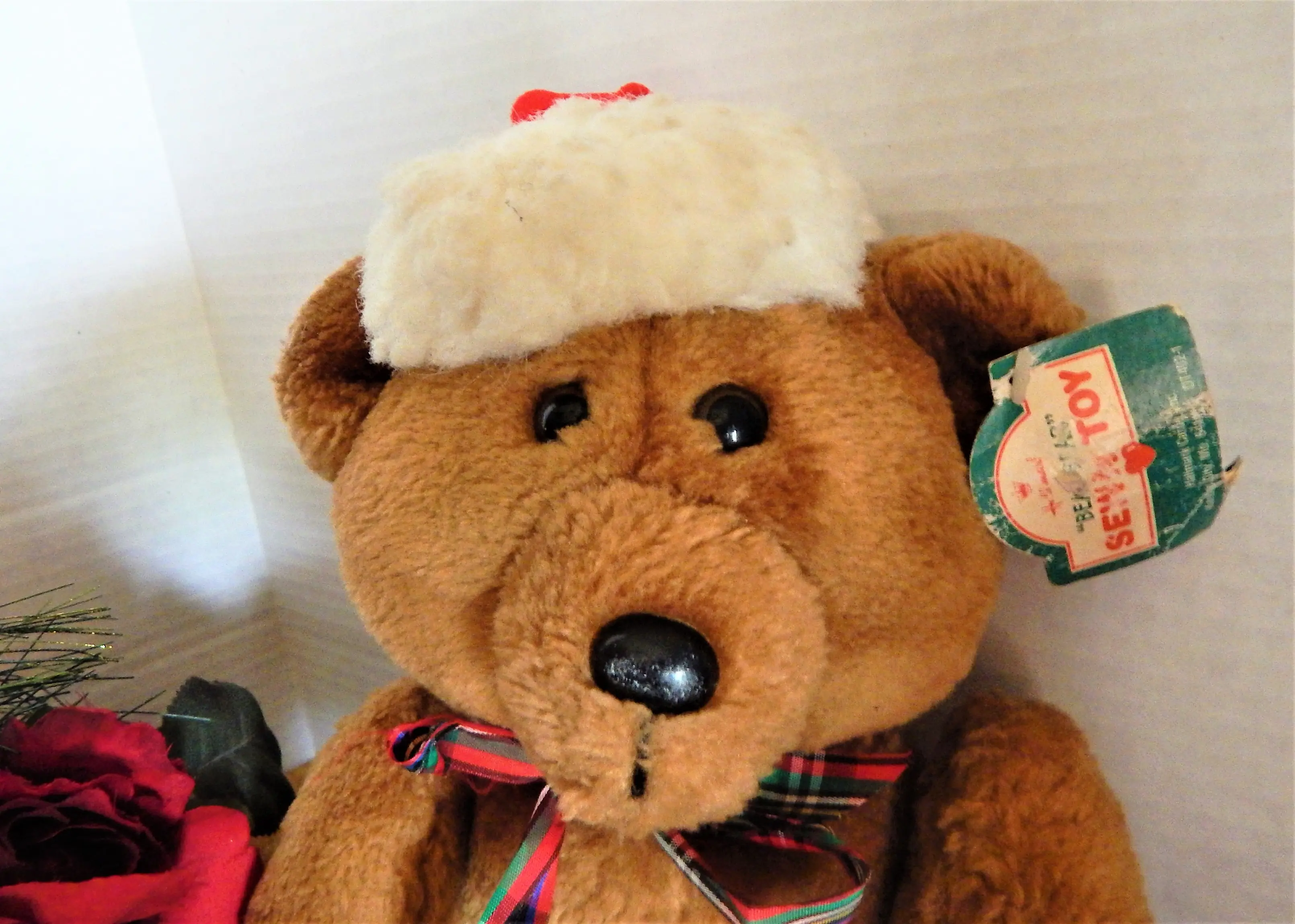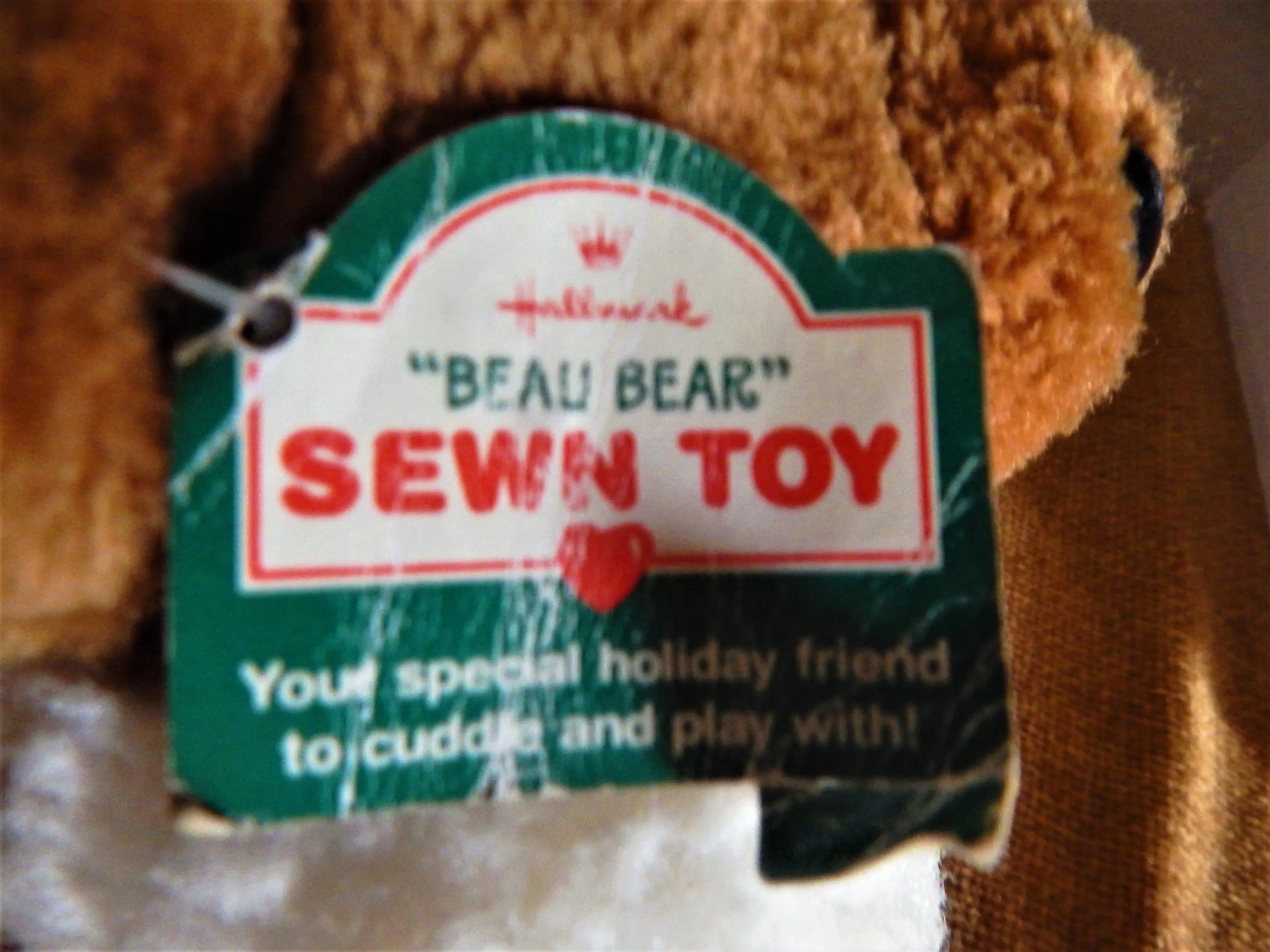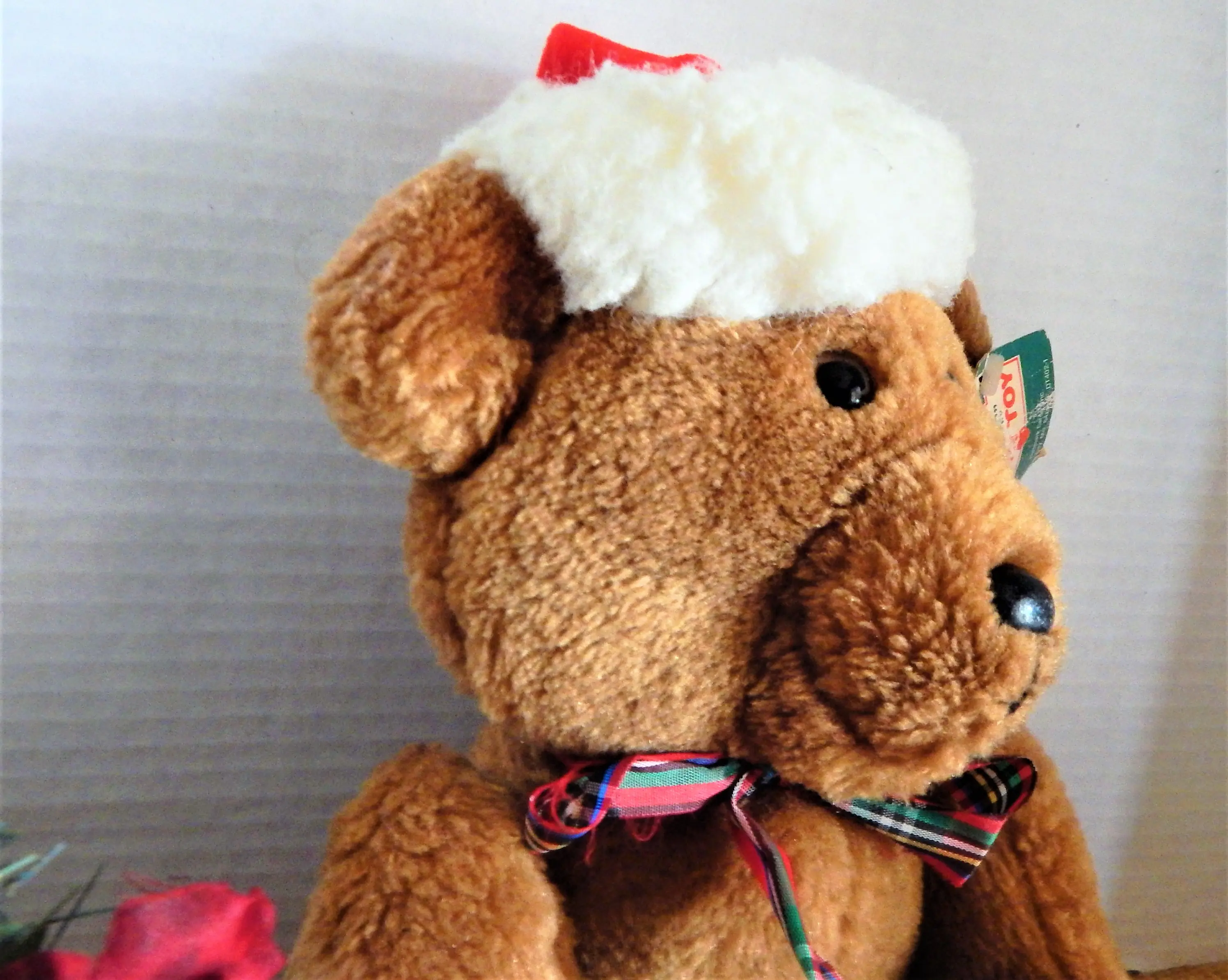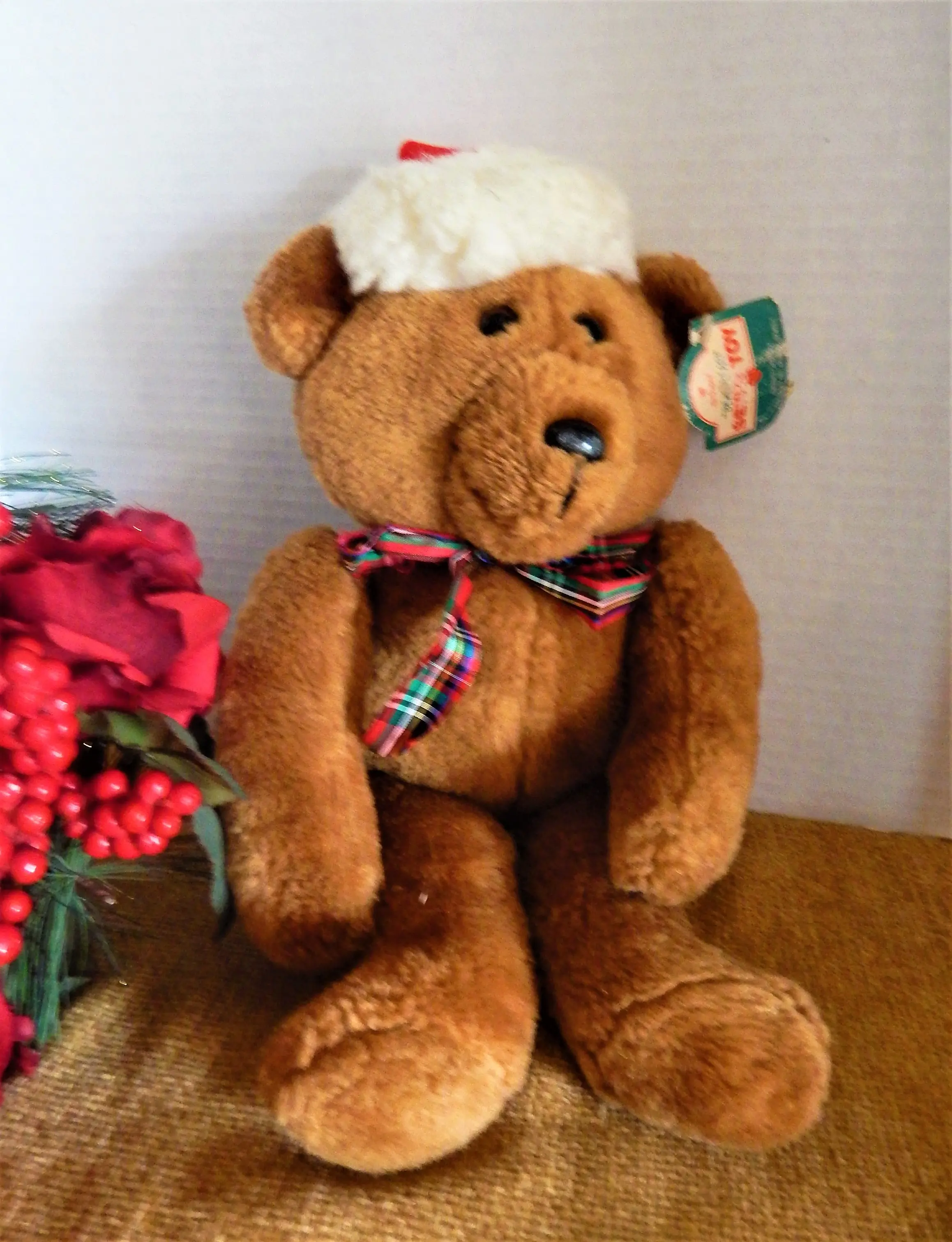 bear, teddy bear, stuffed animal, brown bear, santa bear, christmas bear, vintage bear, hallmark, sewn bear, 1984, beau bear,