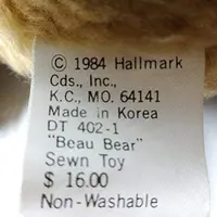 Teddy Bear 17" Stuffed Plush Animal Vintage 1984 Hallmark Beau Bear Sewn Toy Rare Collectible Christmas Bear