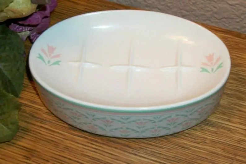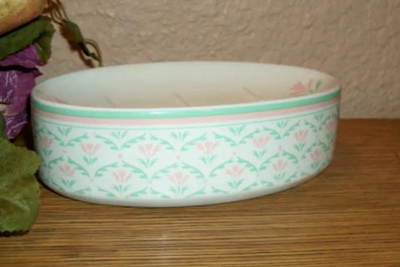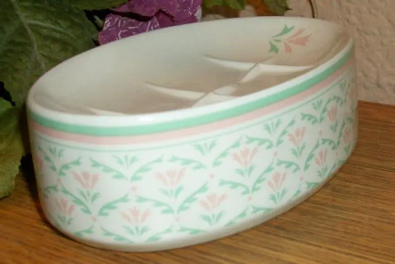 Soap Dish White Porcelain Floral Elegant Oval Feminine Bathroom Accessory Vintage 1980s Vanity Dish Home Decor