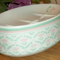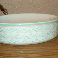 Decorated around the exterior with pastel pink and green floral design