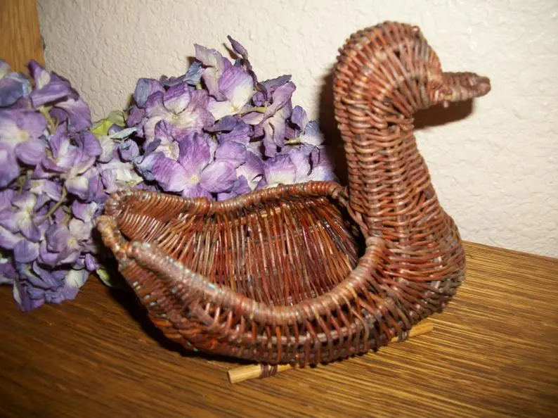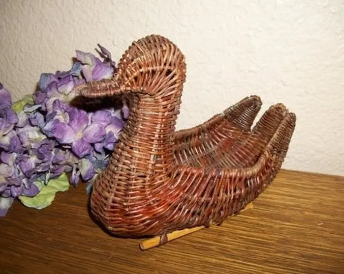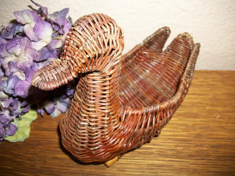 Brown wicker duck, rattan basket