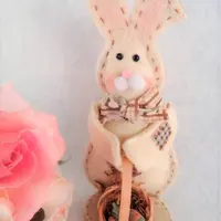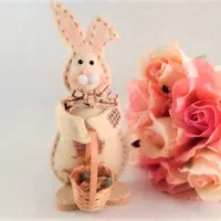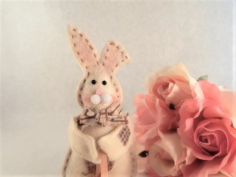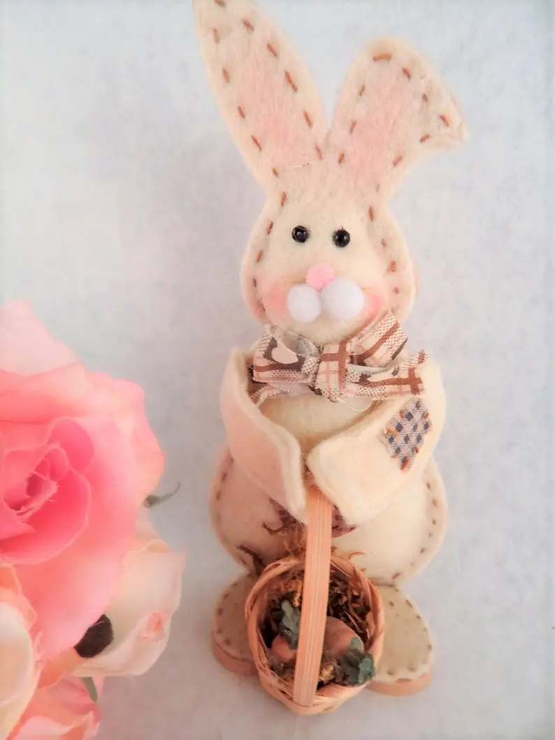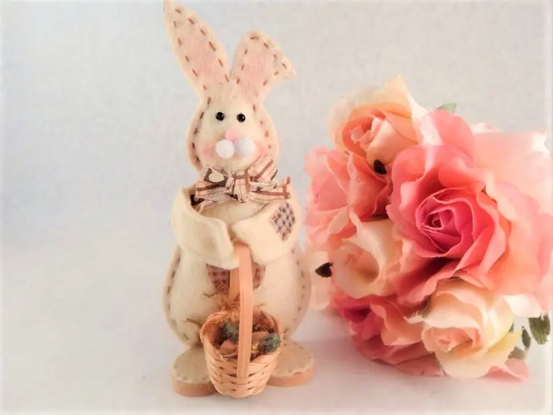 rabbit, easter bunny, white rabbit, easter basket, figurine, folk art, country bunny, easter decor, farmhouse,