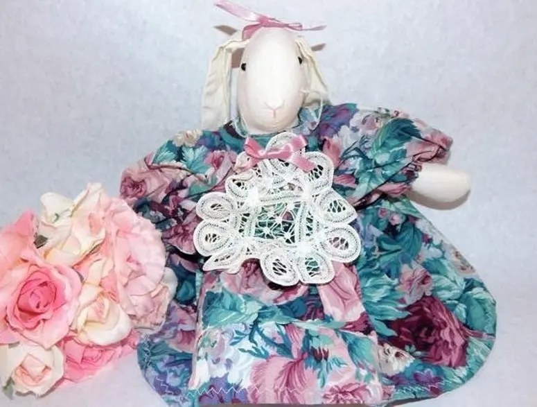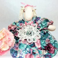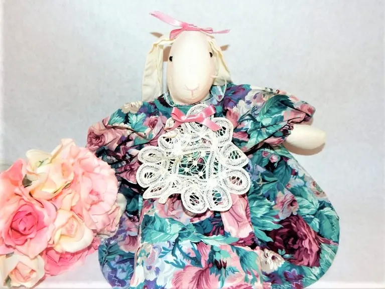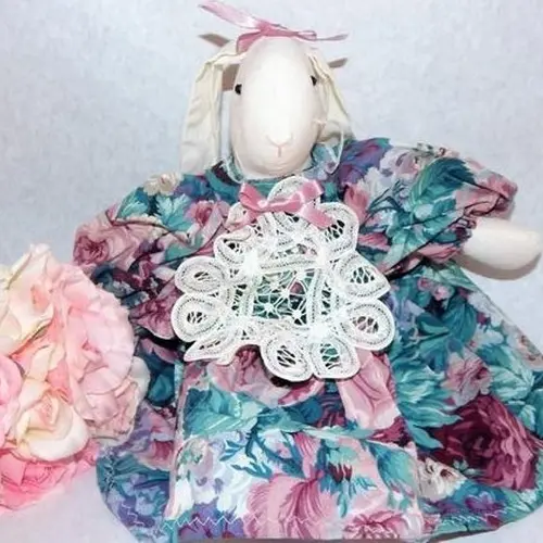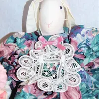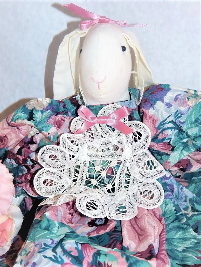 doll, bunny, rabbit, white rabbit, wimpole street, victorian rabbit, easter bunny, garden party, battenburg lace, muslin rabbit, home decor, shelf sitter