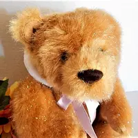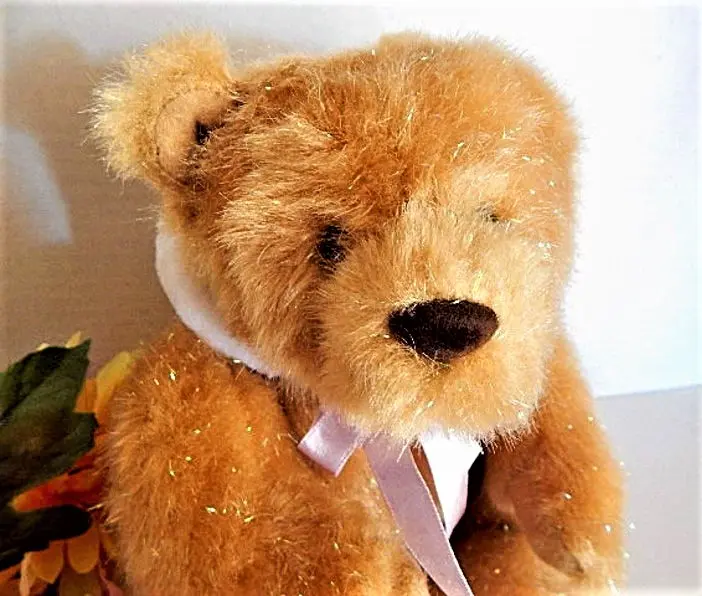 Teddy Bear Bunny Rabbit Ears Stuffed Animal 8" Sparkly Smooth Beige Plush Toy Easter Basket Stuffer Vintage 1990s Gift
