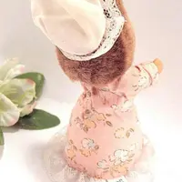 Her peach-colored floral dress is lace trimmed and softly fiber-filled to create the free-standing toy