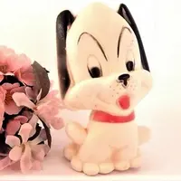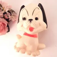 Squeak Toy Puppy White and Black Rubber Dog Vintage 1965 Baby Joy Collectible Toy Animal