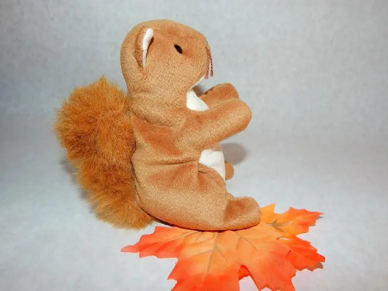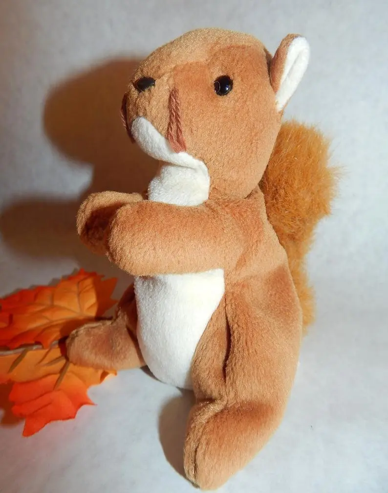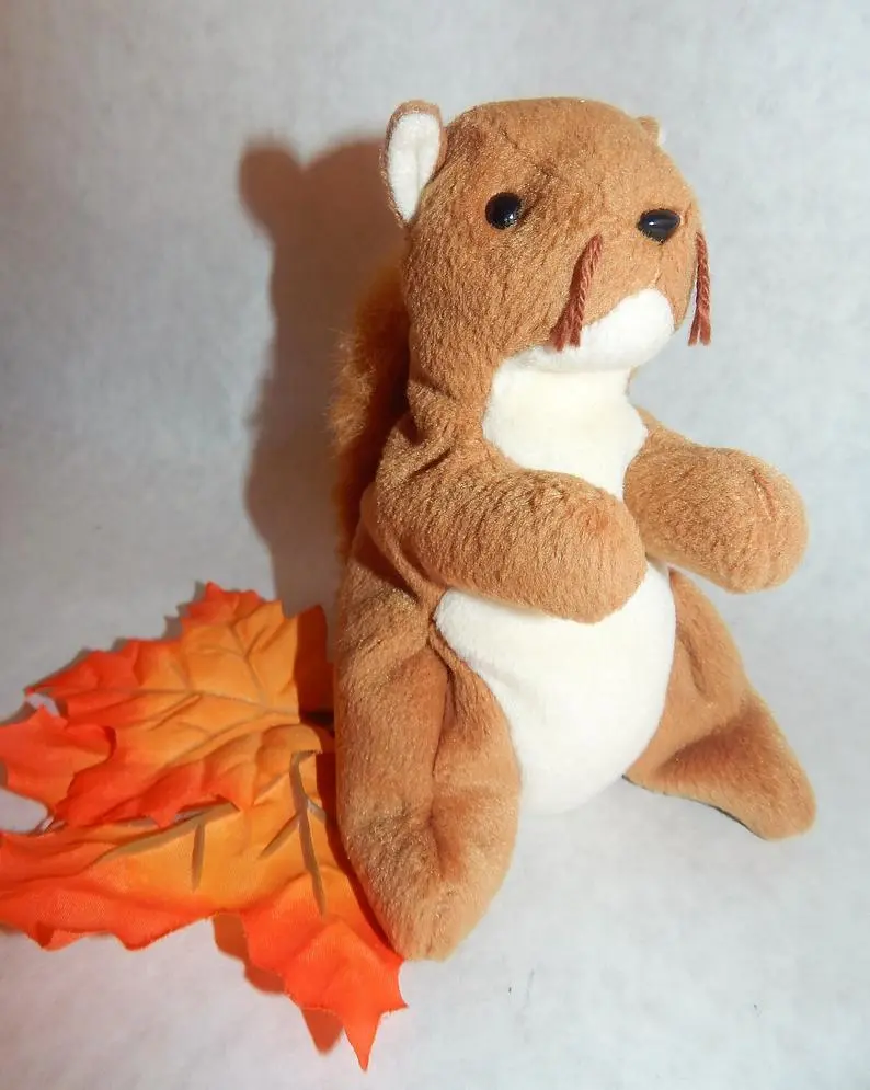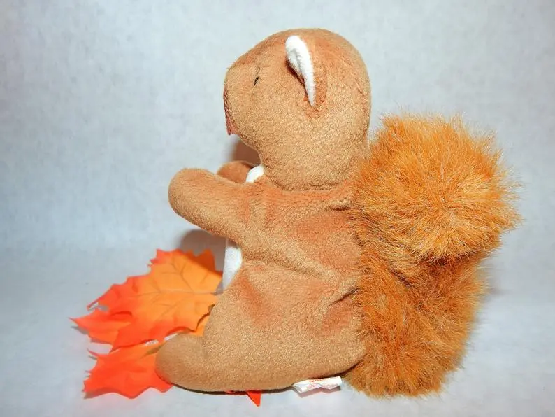 vintage, toy, stuffed animal, plush, TY, beanie baby, collectible, squirrel, fall home decor, forest animal,