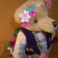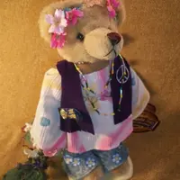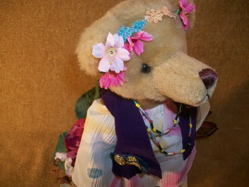 Bear, Plush Stuffed Animal, 1960s Summer of Love, Hippie, Flower Child, Named Ivy, Brass Bear, Collectible, Vintage 1999