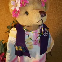 Plush Stuffed Bear, 1960's Hippie Bear, Ivy