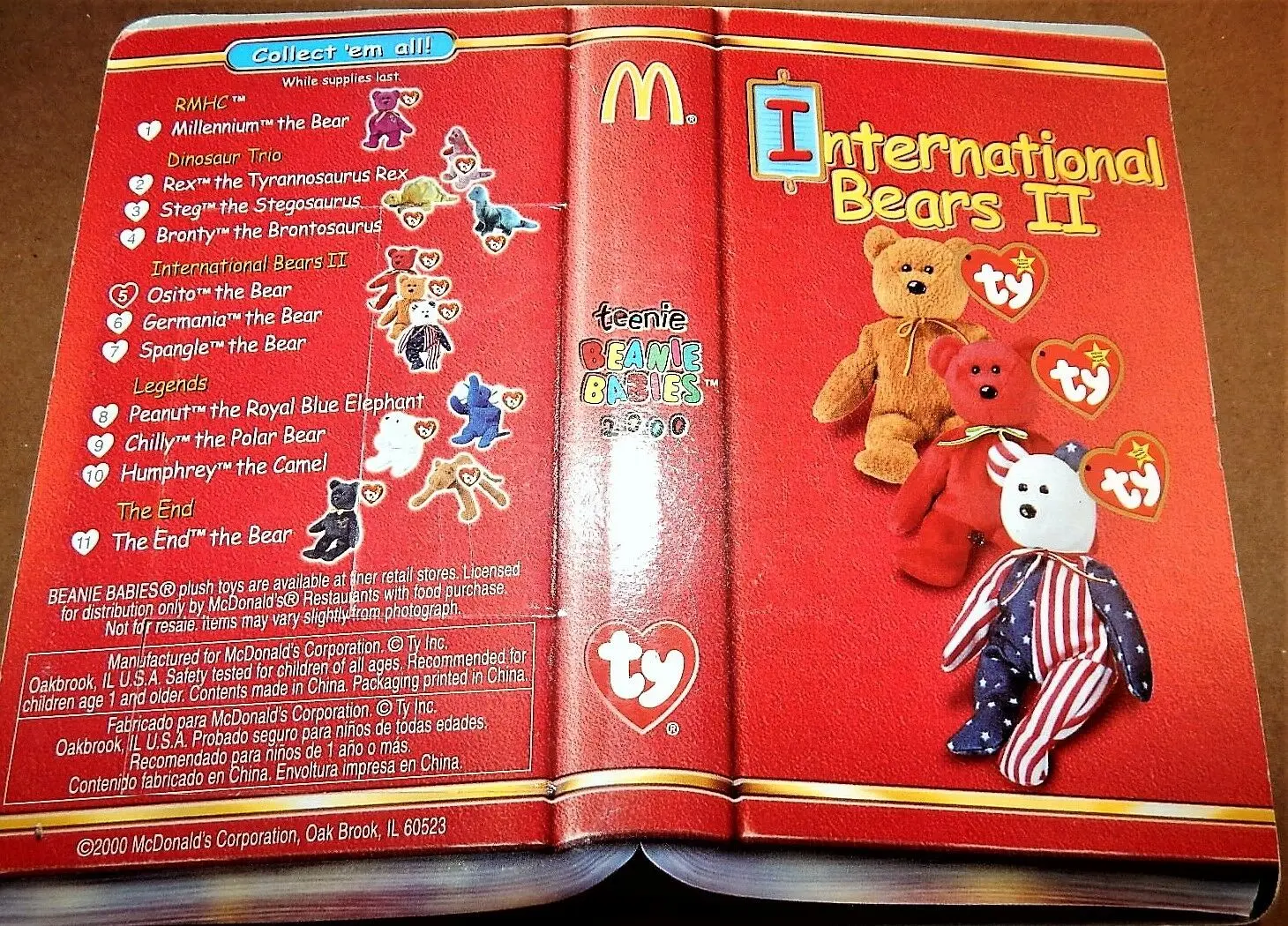 toy, stuffed animal, bears, ty, beanie baby, osito, mexican bear, international bear II, mc donalds toy, miniature bear, 2000, collectible