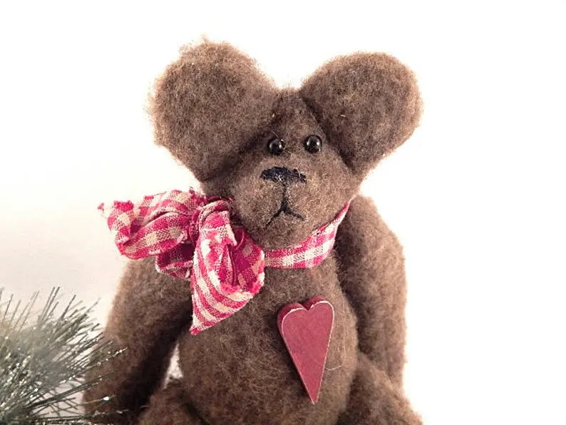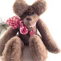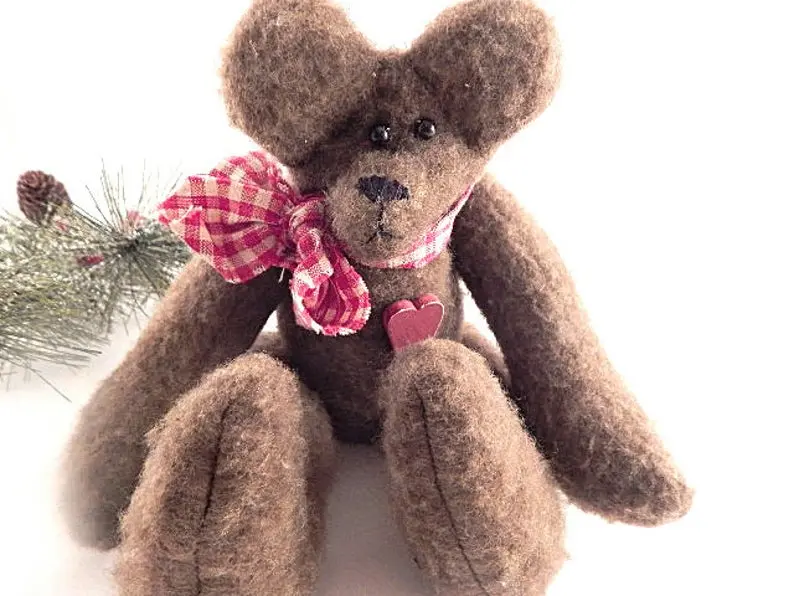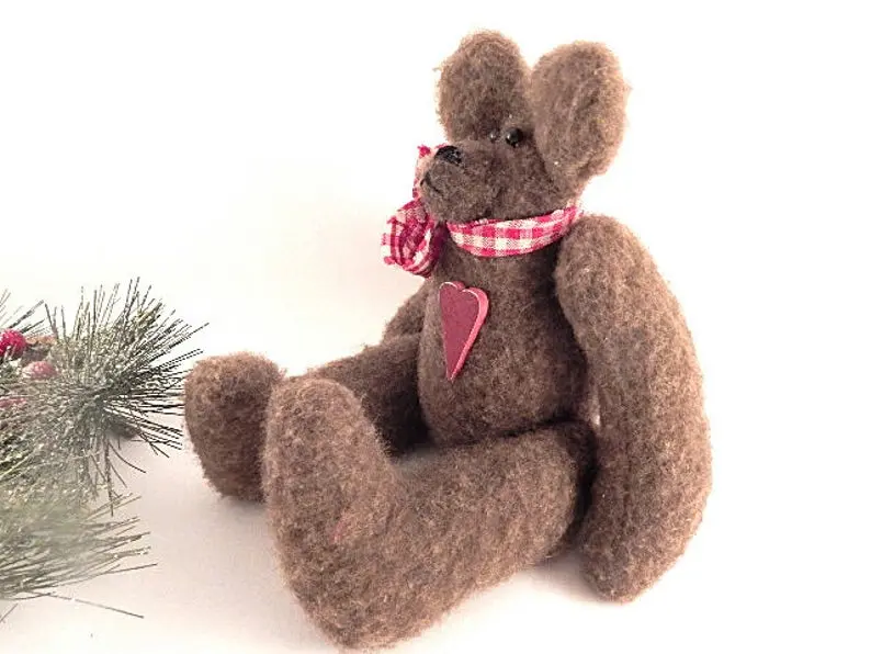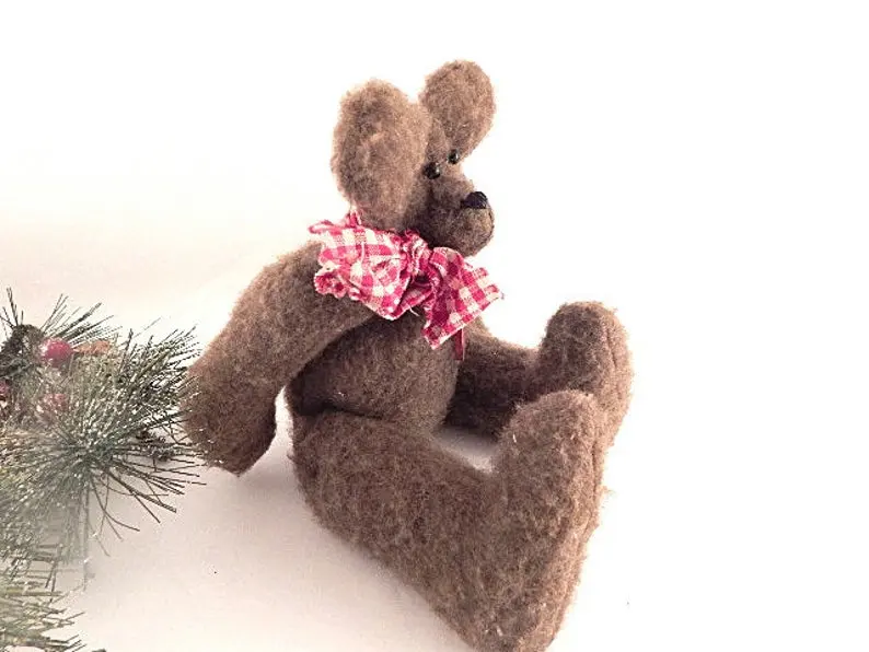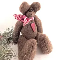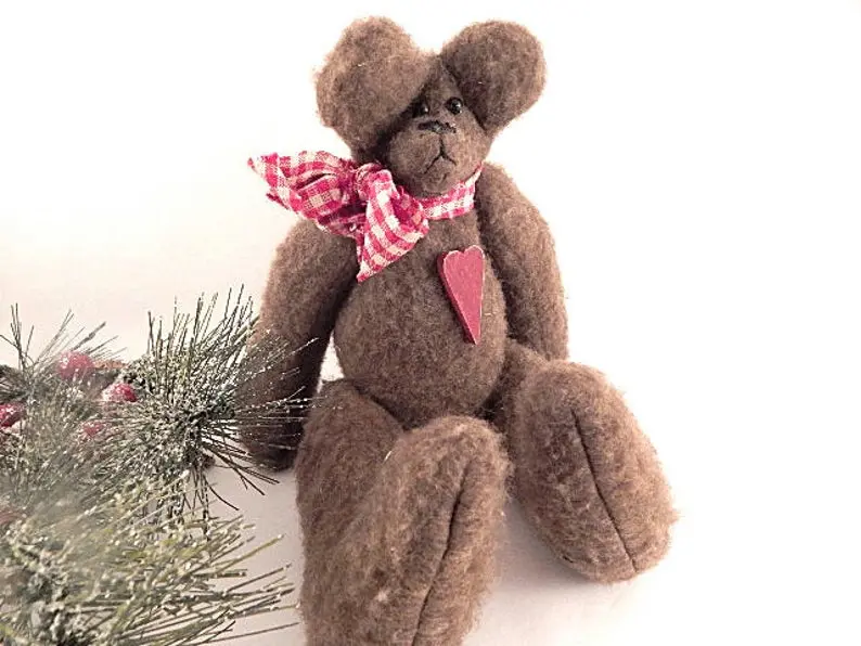 vintage home decor, christmas decoration, collectible, stuffed animal, bear, teddy bear, hand crafted bear, fleece bear, brown bear, display bear, plush, christmas bear, valentines day decor