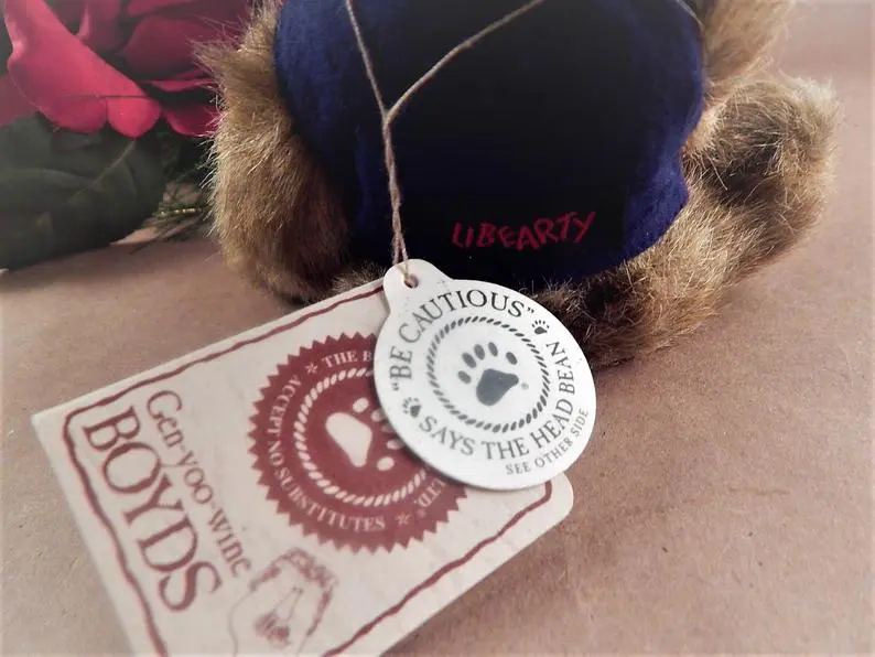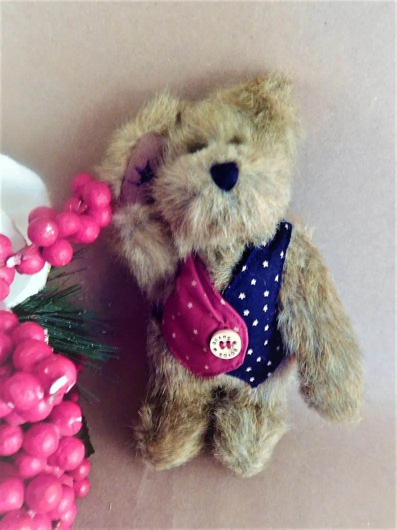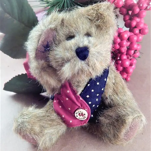 Bear Stuffed Plush Animal Boyds Saluting Liberty Bear Vintage 6 Inch Brown Jointed Red and Blue Stars I B Bearyproud Stocking Stuffer Toy