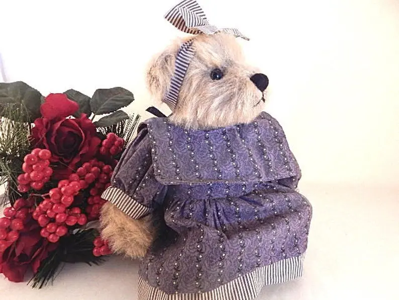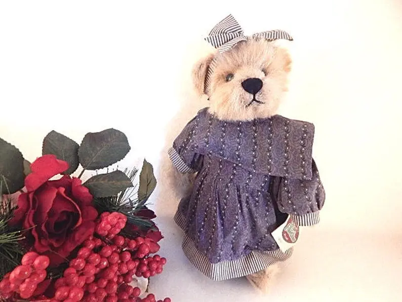bear, teddy bear, girl bear, toy, ganz, cottage collectibles, becky, stuffed plush animal, vintage, display bear, bear collector gift, gift for her, jointed bear