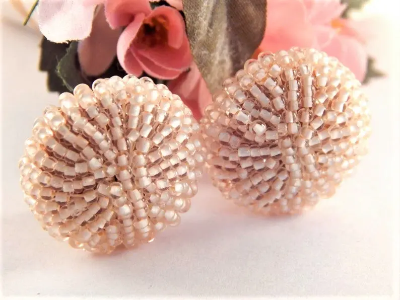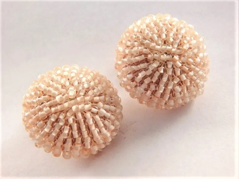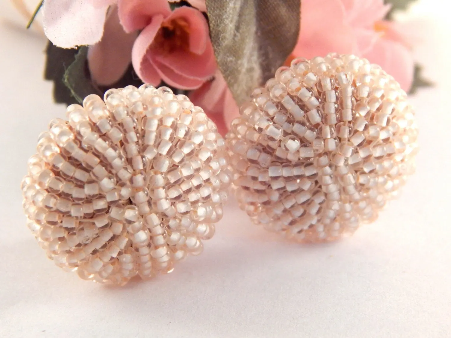 Earrings Clip On White Seed Bead Cluster Vintage 1950s Earrings Elegant Formal Bridal Beaded Fashion Jewelry