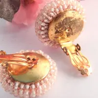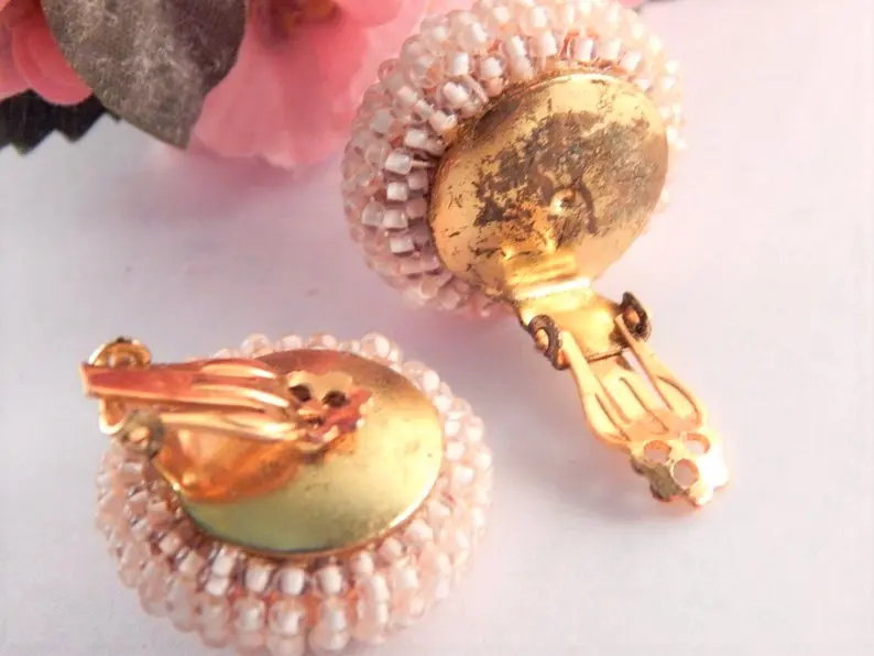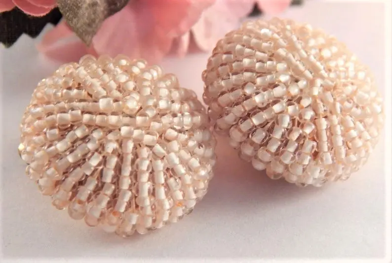 vintage jewelry, earrings, clip on earrings, beaded jewelry, shell design, white ivory, bead cluster, seed bead earrings, beach wedding bridal ,regal elegant, semi formal day, formal evening,