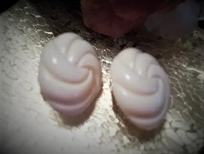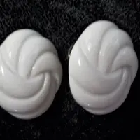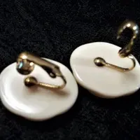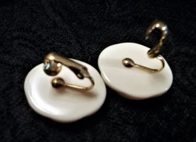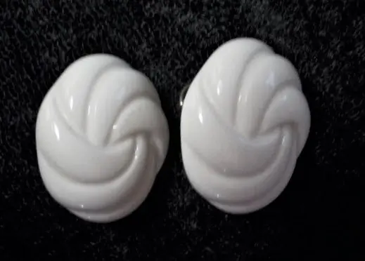 Earrings Clip On Oval Molded Plastic Ivory Swirls 1960's Collectible Vintage Costume Jewelry Fashion Accessory