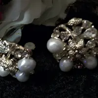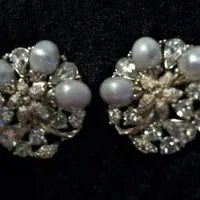 vintage, jewelry, earrings, clip on, wedding earrings, wedding jewelry, ornate, artistic, modern cluster, bridal, vintage costume jewelry, beaded jewelry, pearl jewelry, pearl earrings, rhinestone earrings, white earrings,