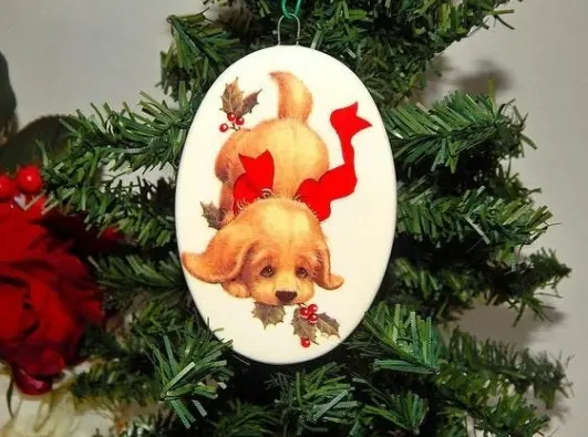 Adorable blond puppy dog Christmas tree ornament