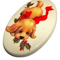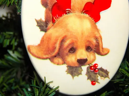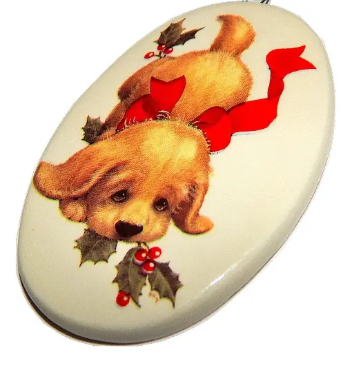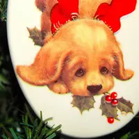 Puppy Dog Christmas Tree Ornament Blond Cocker Spaniel Puppy Oval White Porcelain Vintage Holiday Home Decor